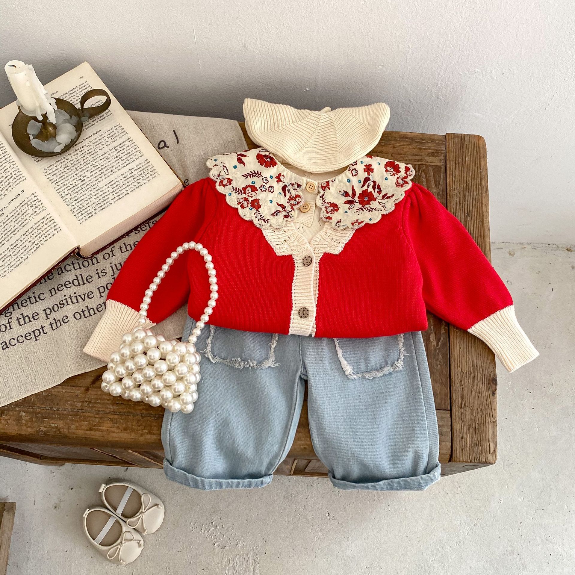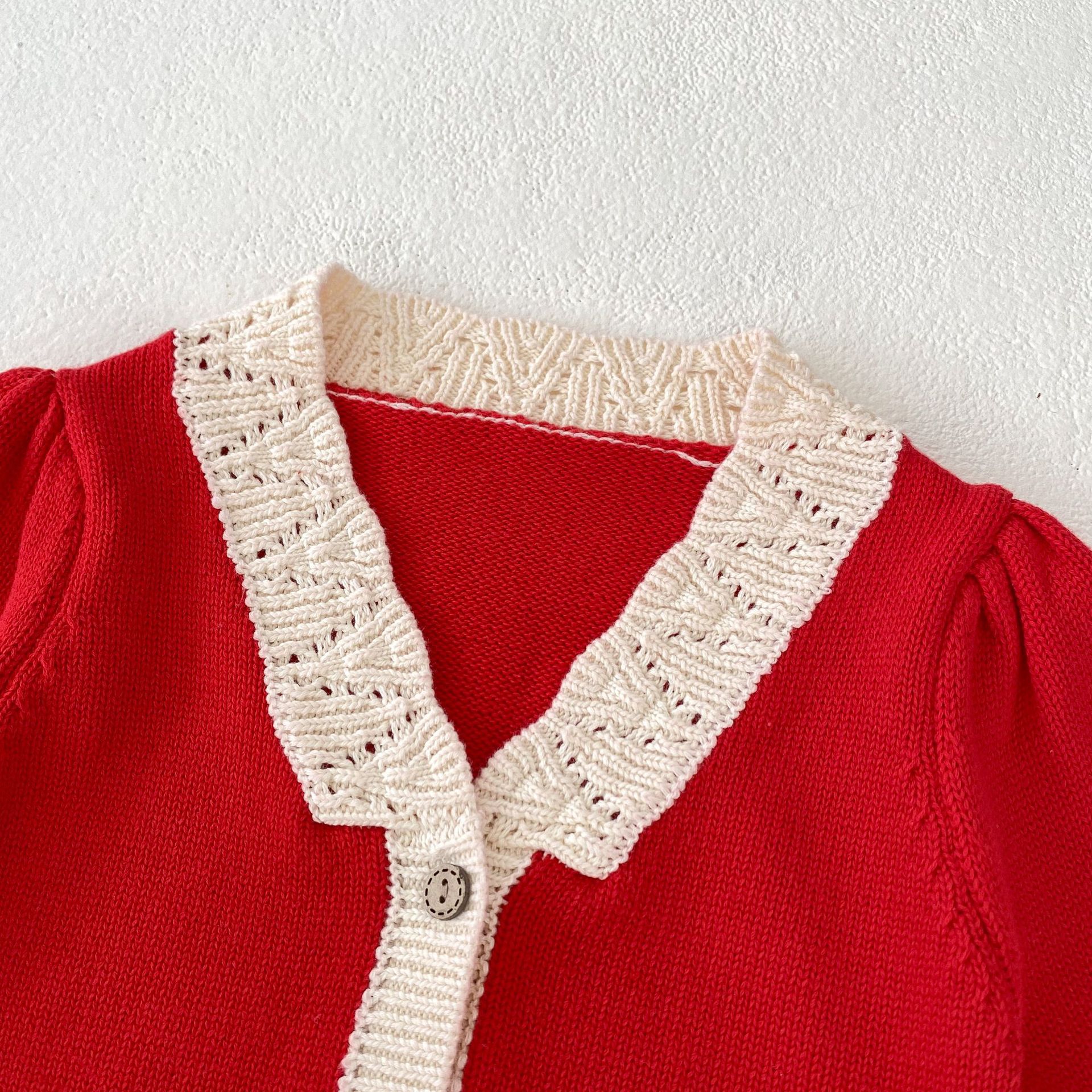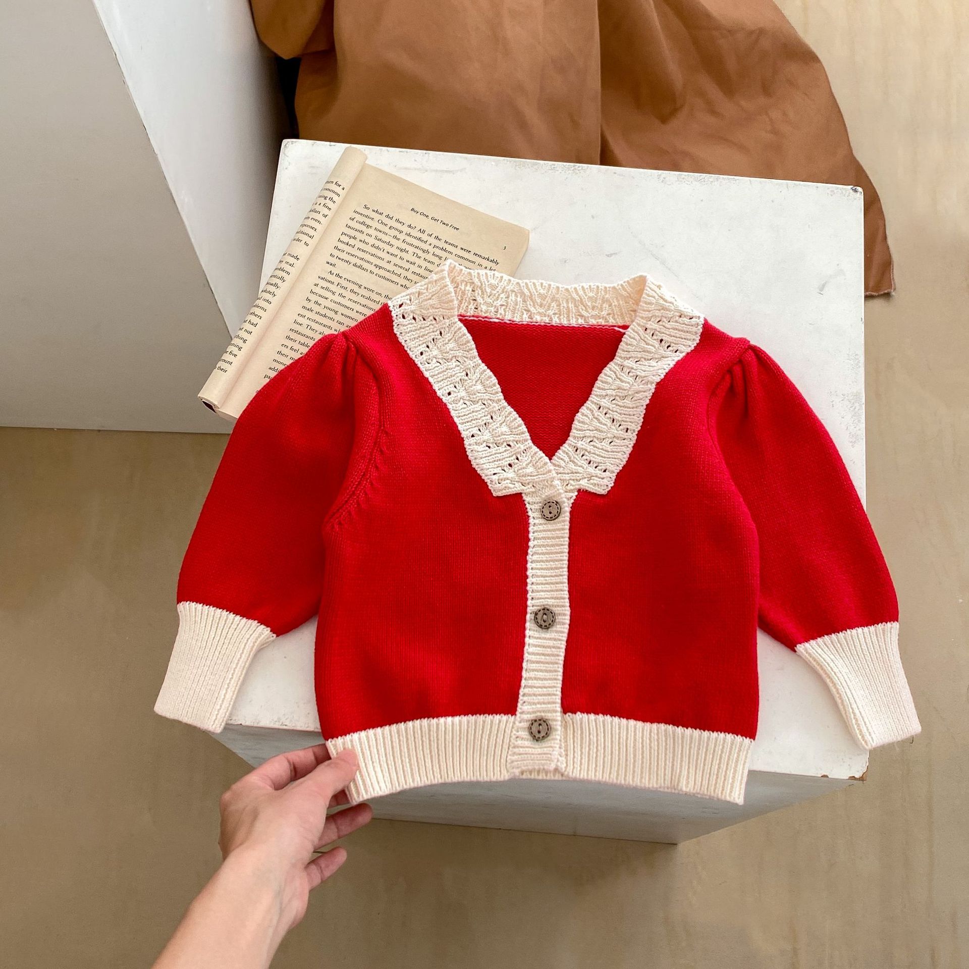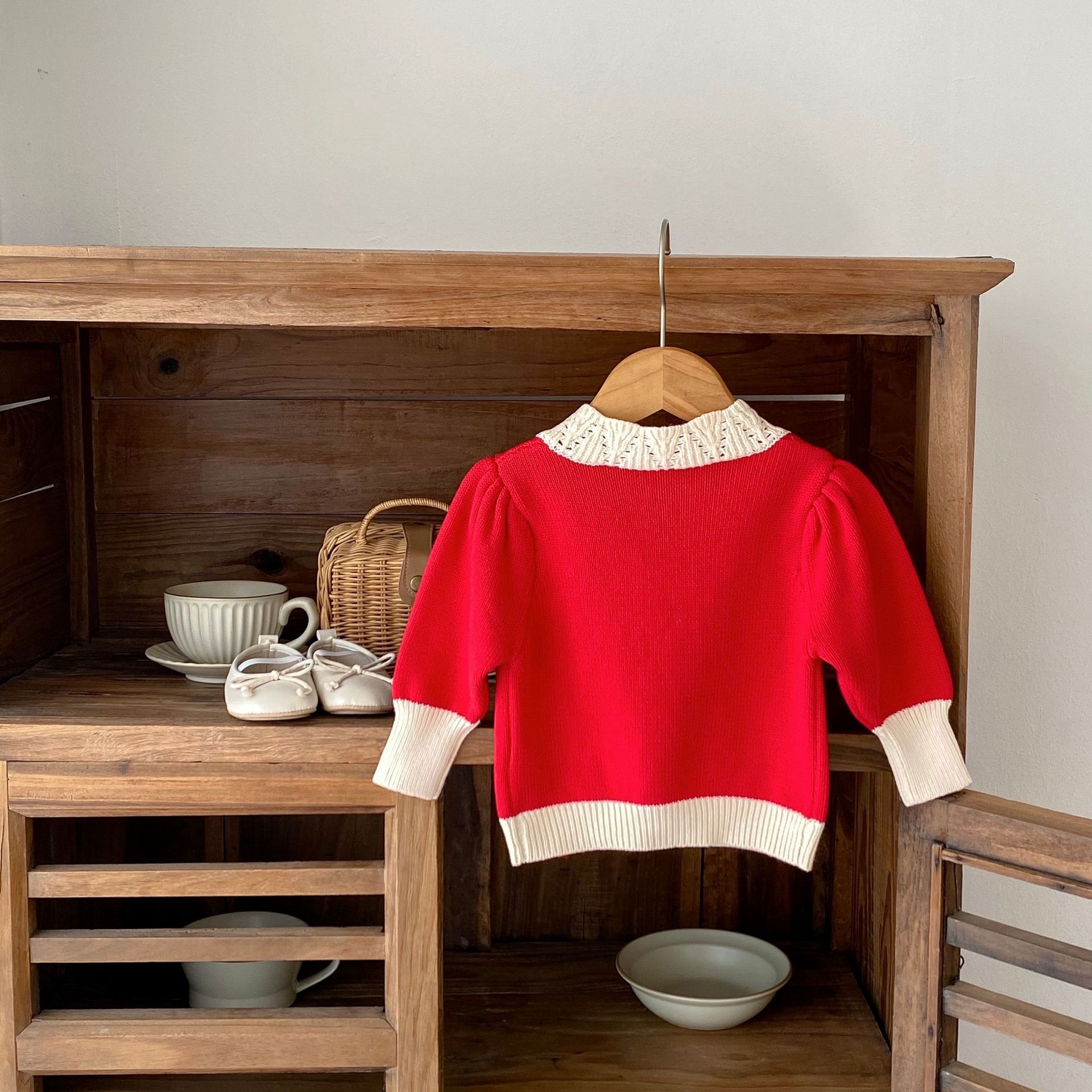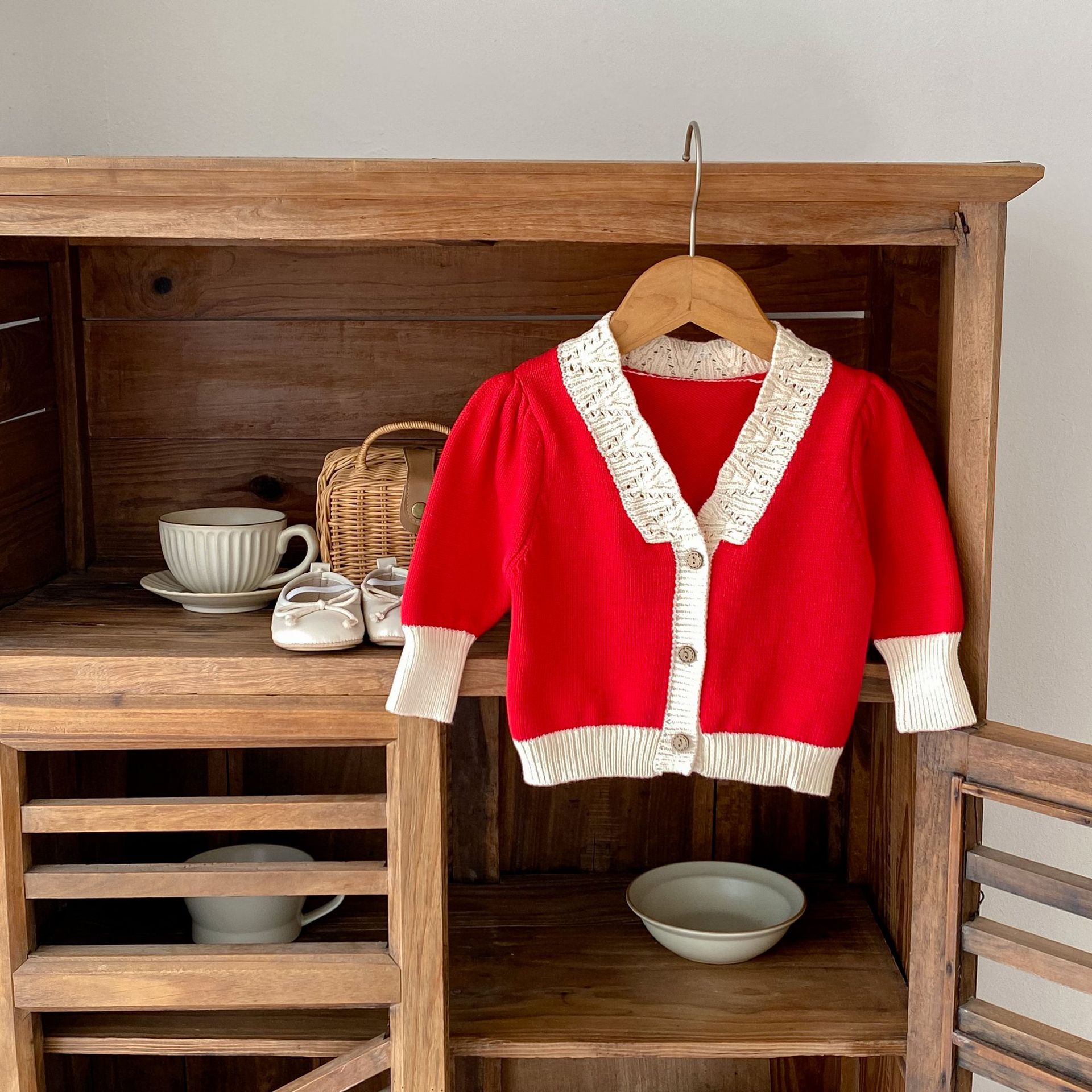 0-18M Baby Red Knitted Sweater Cardigan V-Neck Baby Boutique Clothing