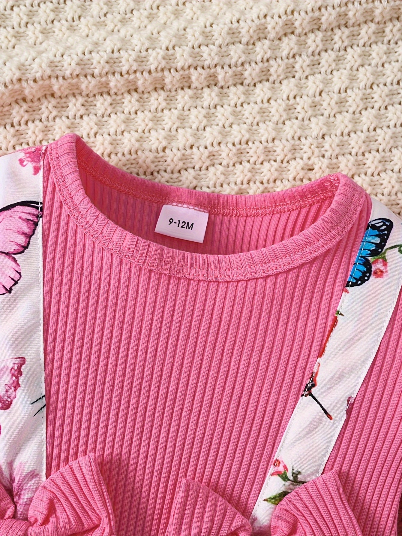 3M-3Y Baby Girls Bow Print Patchwork Fake Two Piece Dresses Baby Clothing