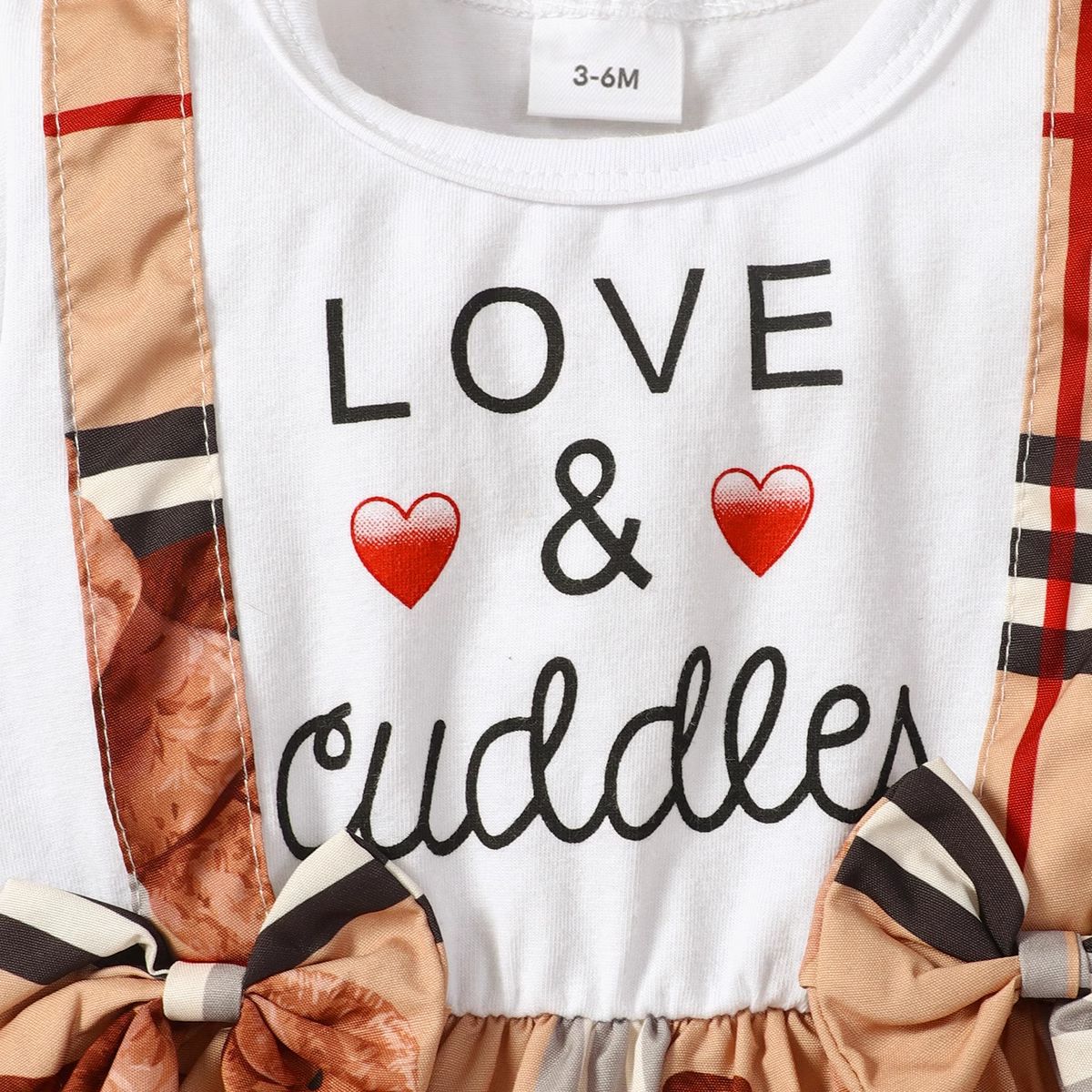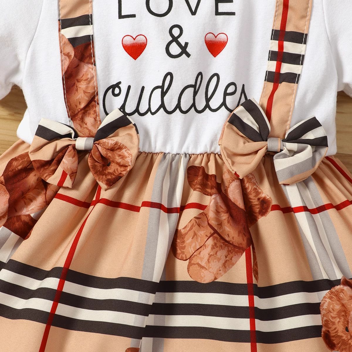 3M-3Y Baby Round Neck Lettered Bear Print Fake Two Piece Dresses Baby Clothes