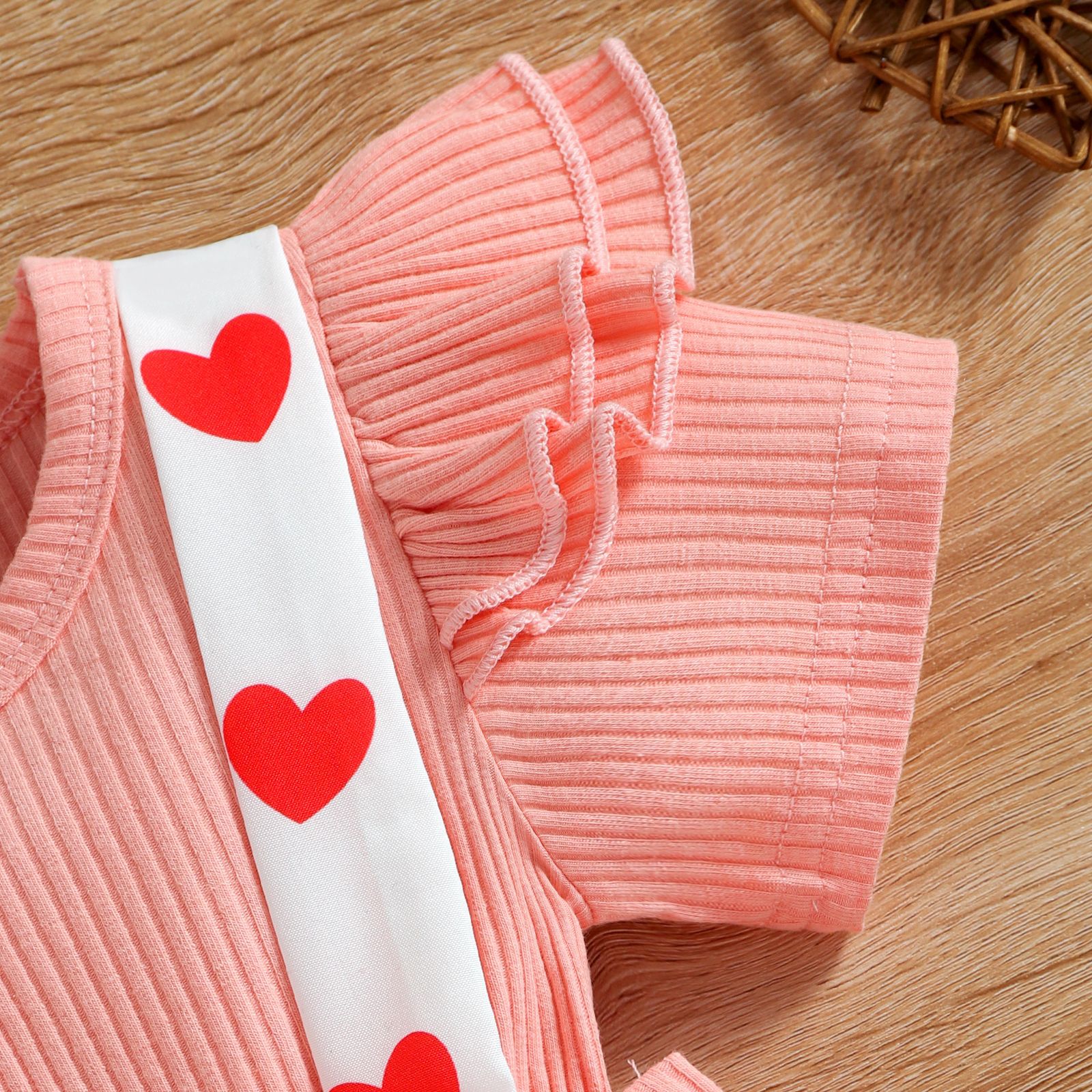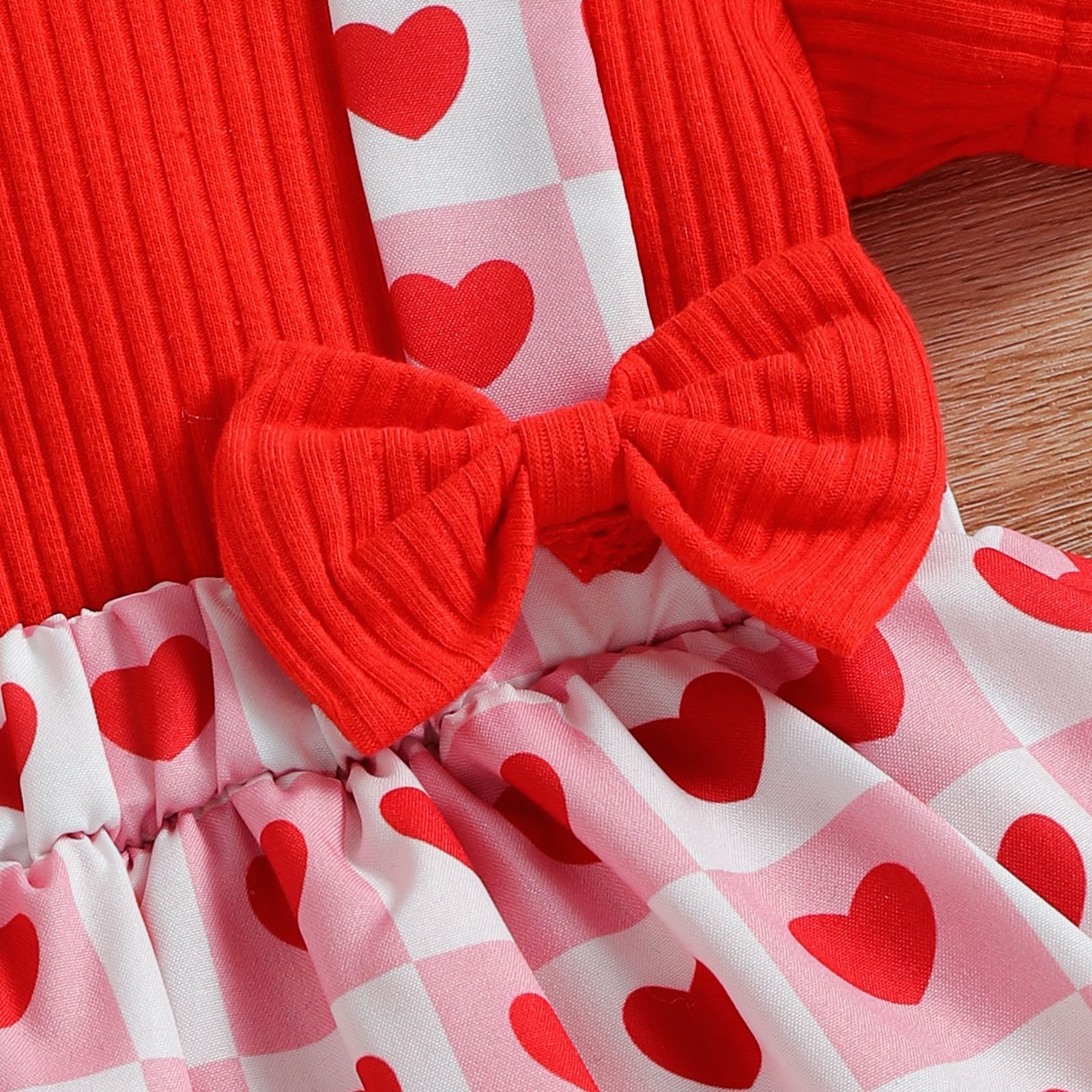 3-18M Baby Girls Valentine's Day Short-Sleeved Love Bow One-Piece Dress Baby Clothes