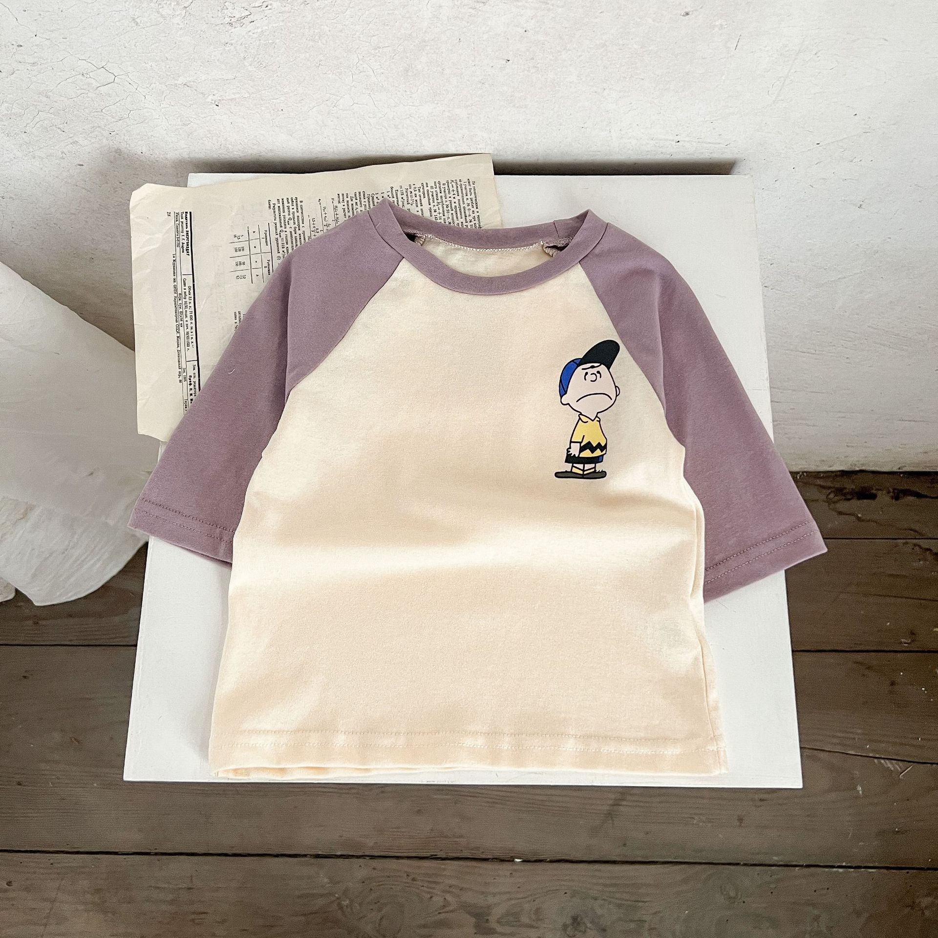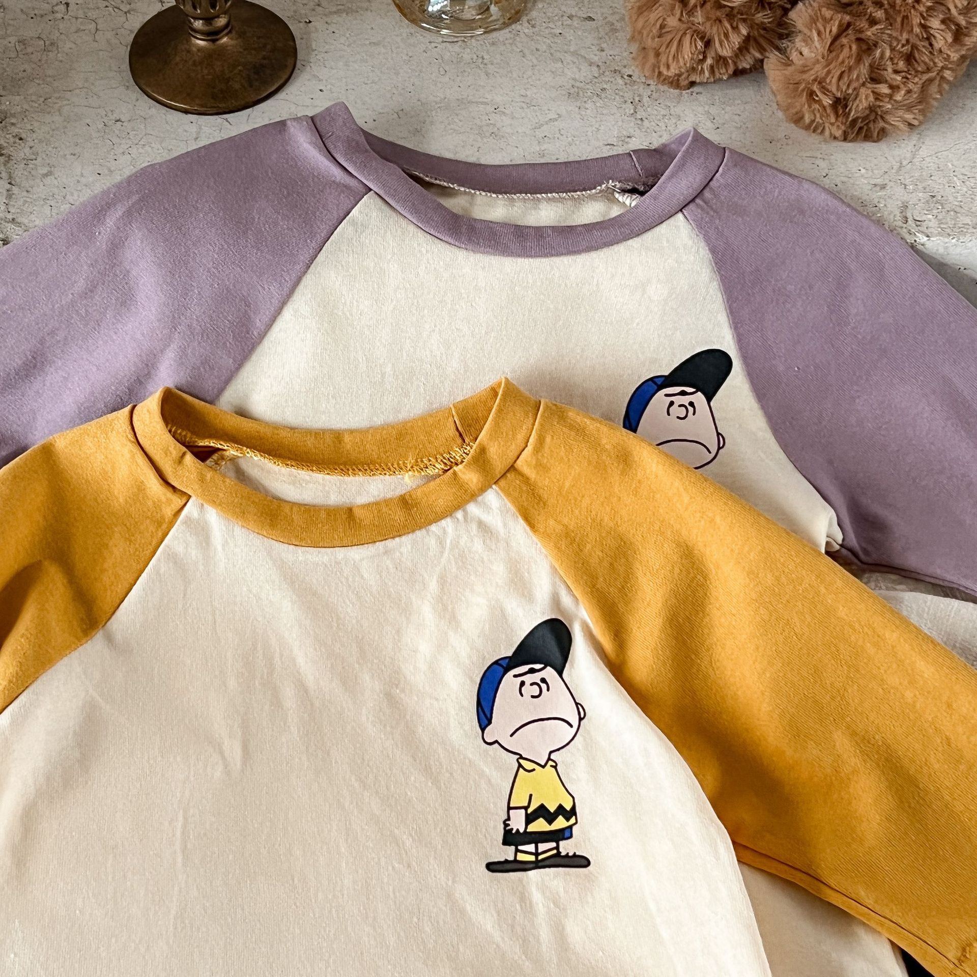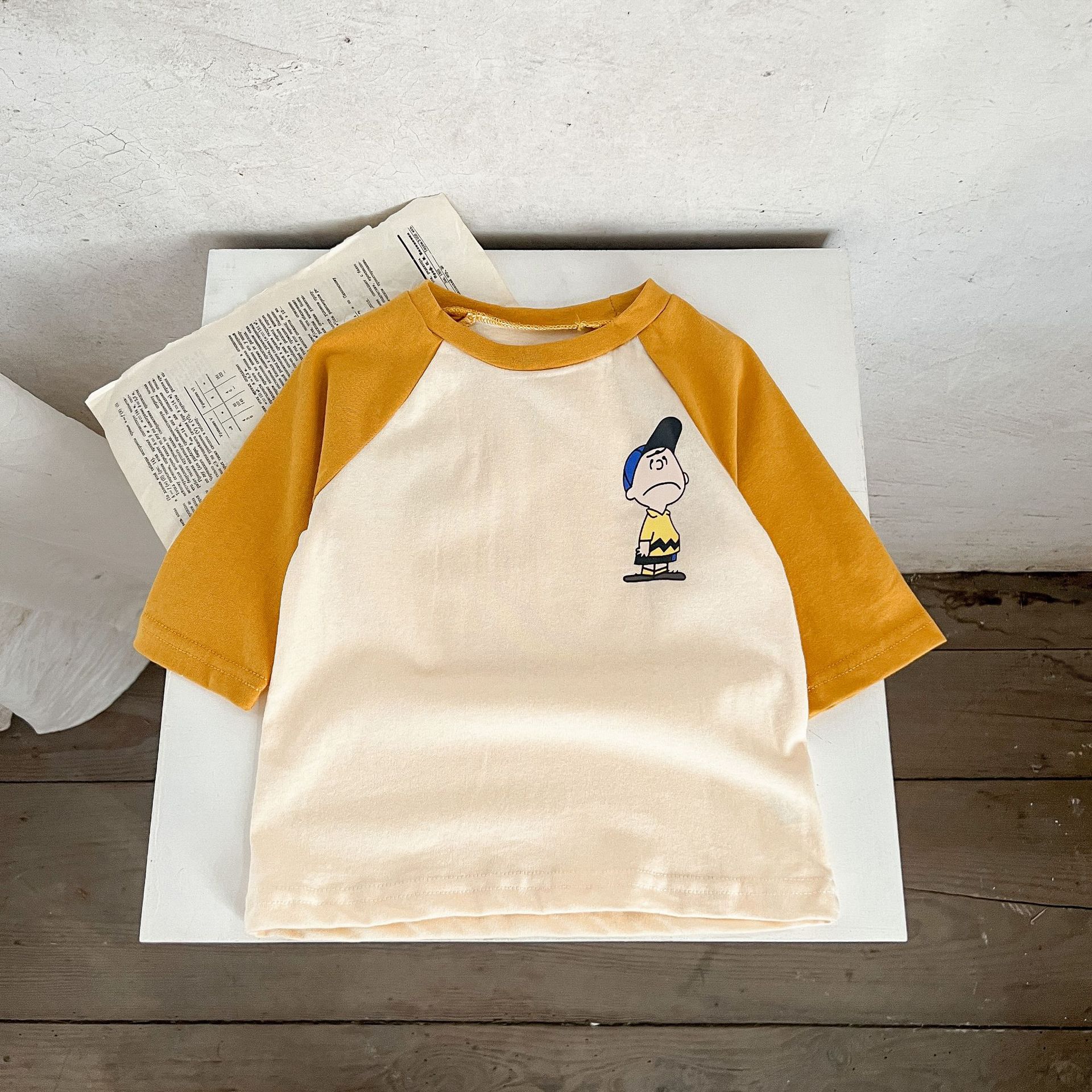 3-24M Baby Cotton Linen Color Matching Cartoon Print Top Casual T-Shirt Baby Clothing