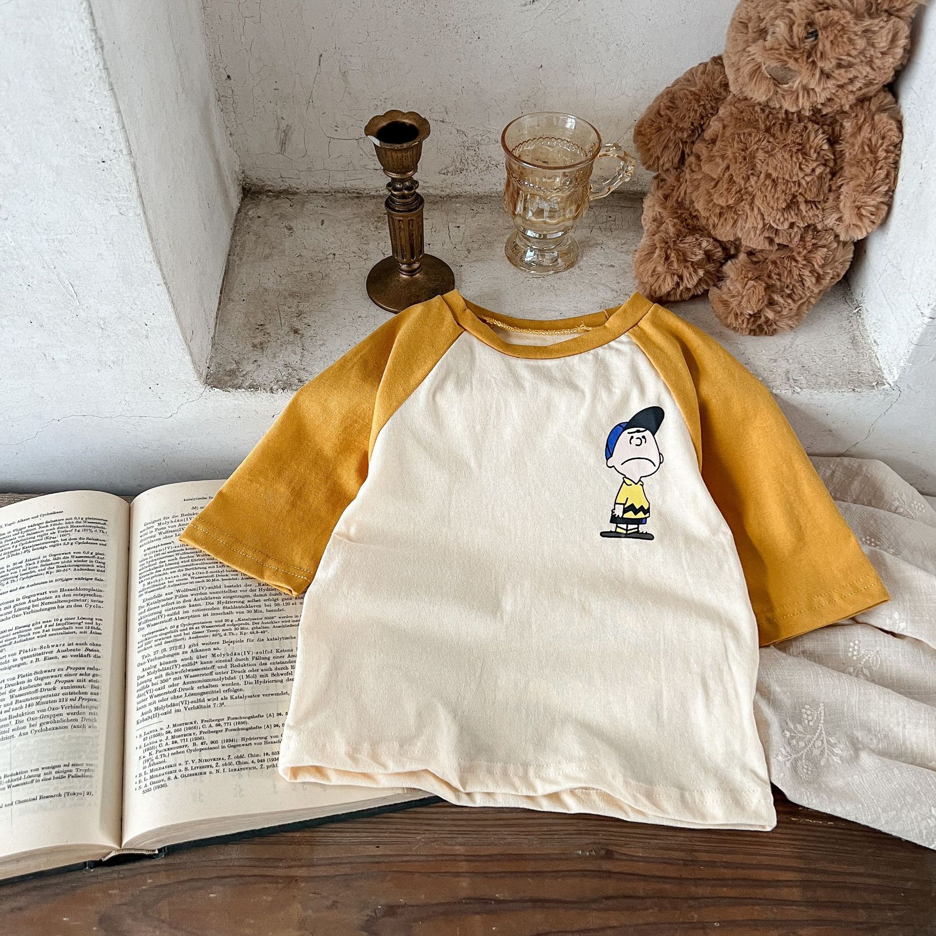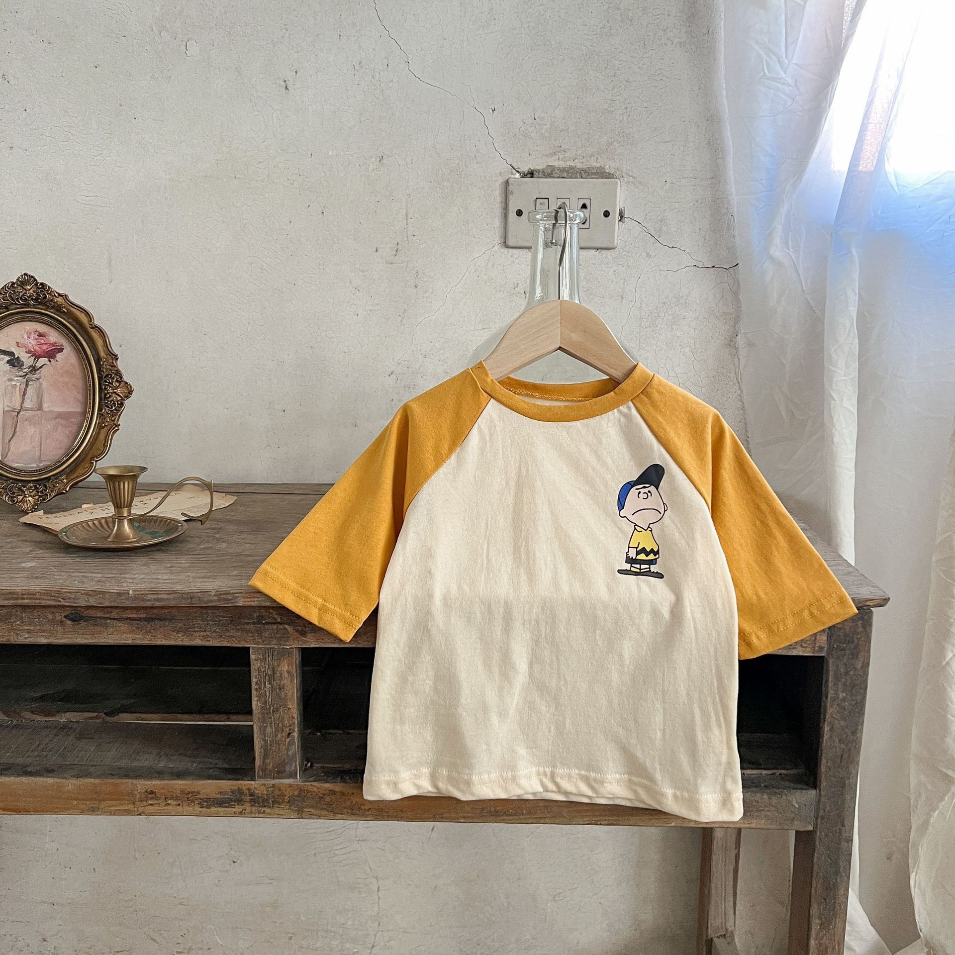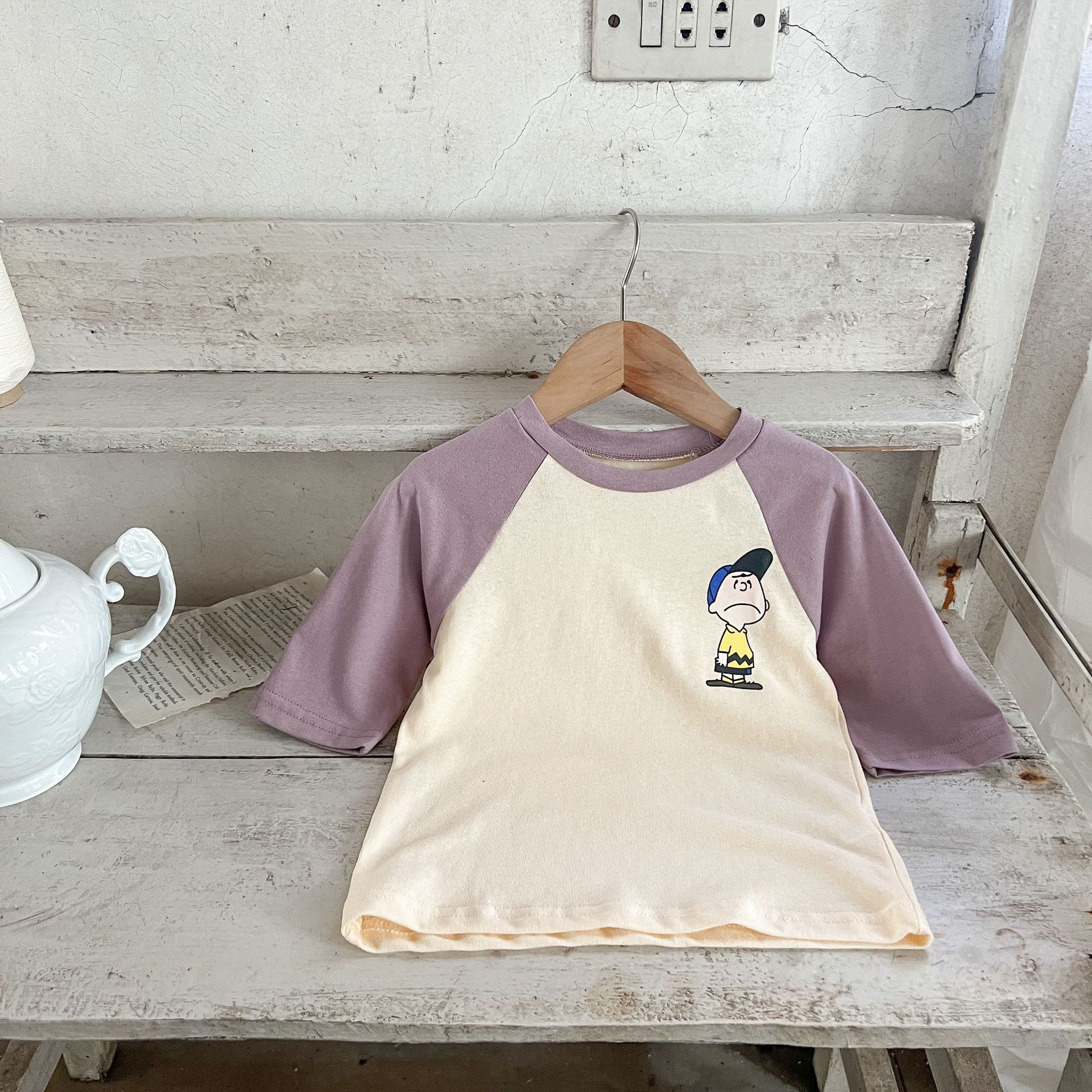 3-24M Baby Cotton Linen Color Matching Cartoon Print Top Casual T-Shirt Baby Clothing