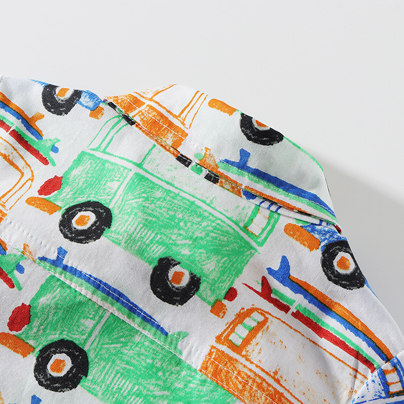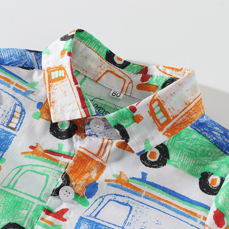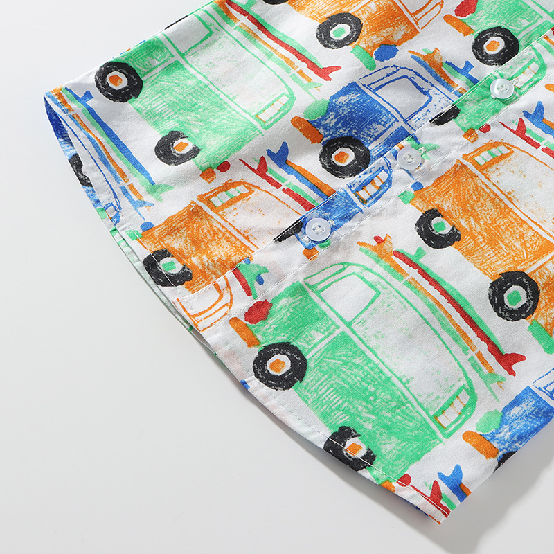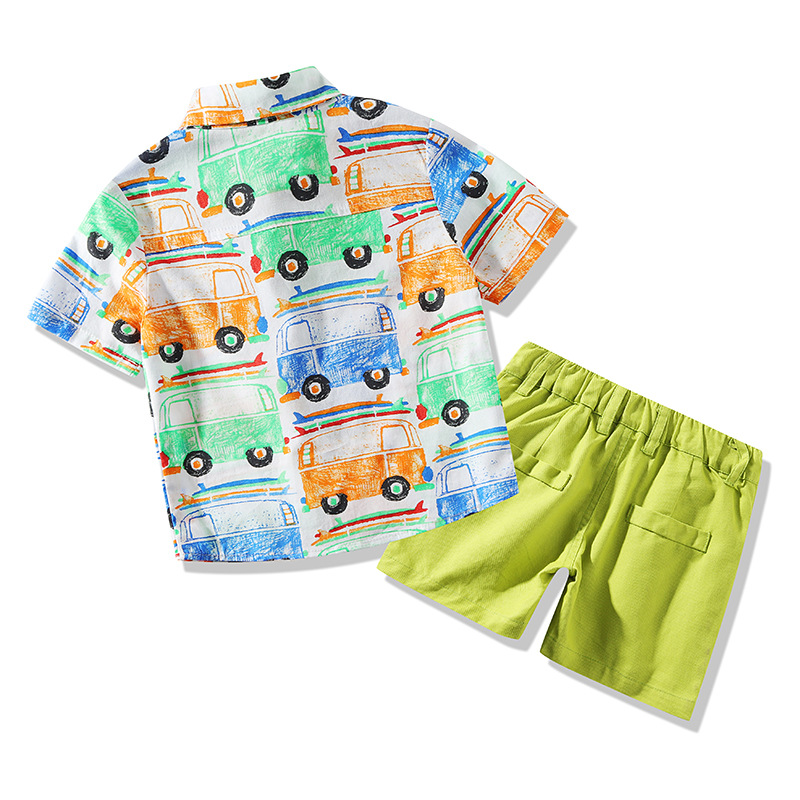 9months-5years Toddler Boy Sets Children's Clothing Suit New Summer Boy Short-Sleeved Printed Cartoon Car Shirt & Solid Color Shorts