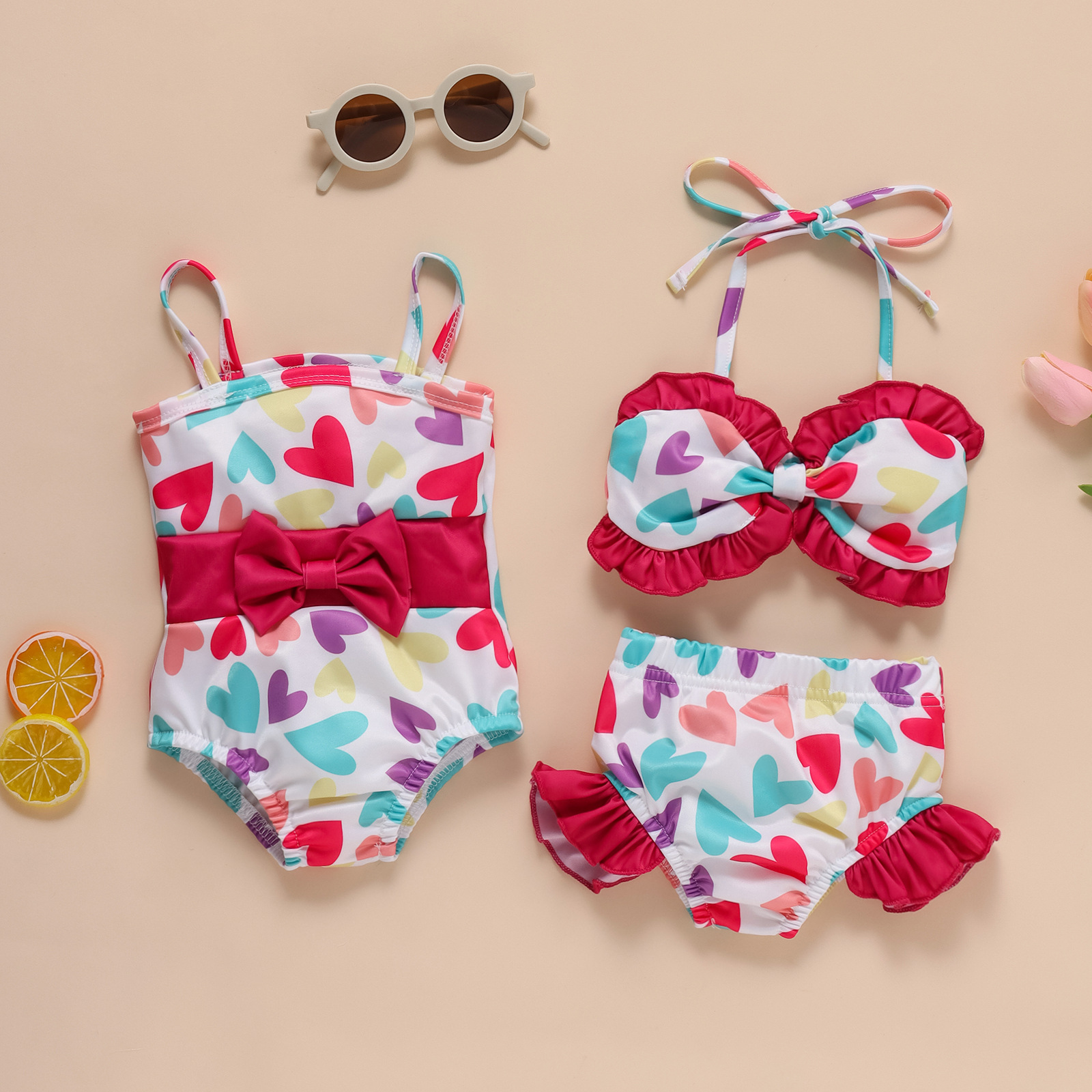 3-24M Heart Suspender Briefs Swimsuit Two-Piece Set Baby Clothes
