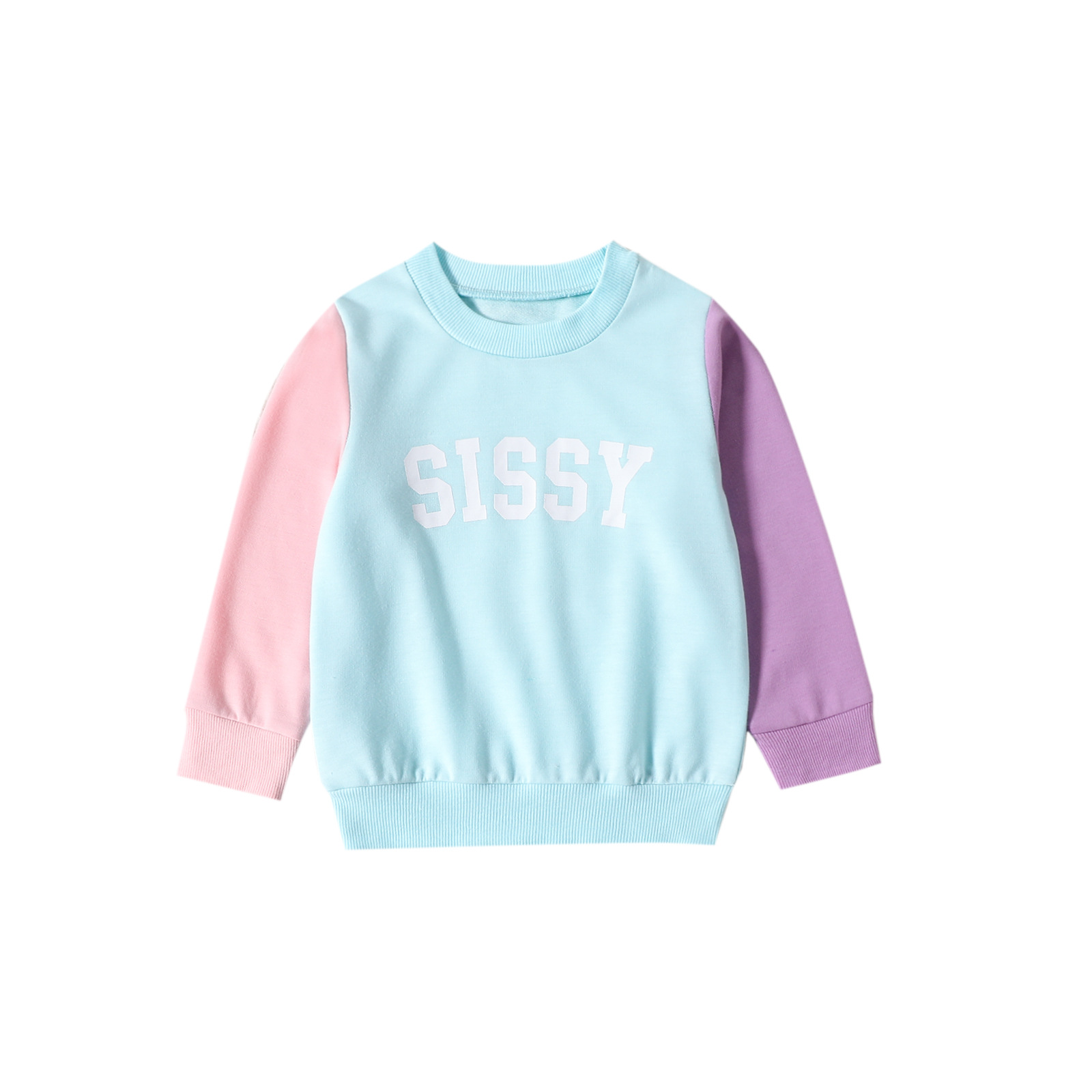 9M-4Y Toddler Girls Letter Contrast Color Long Sleeve Crew Neck Sweatshirt Girls Clothes