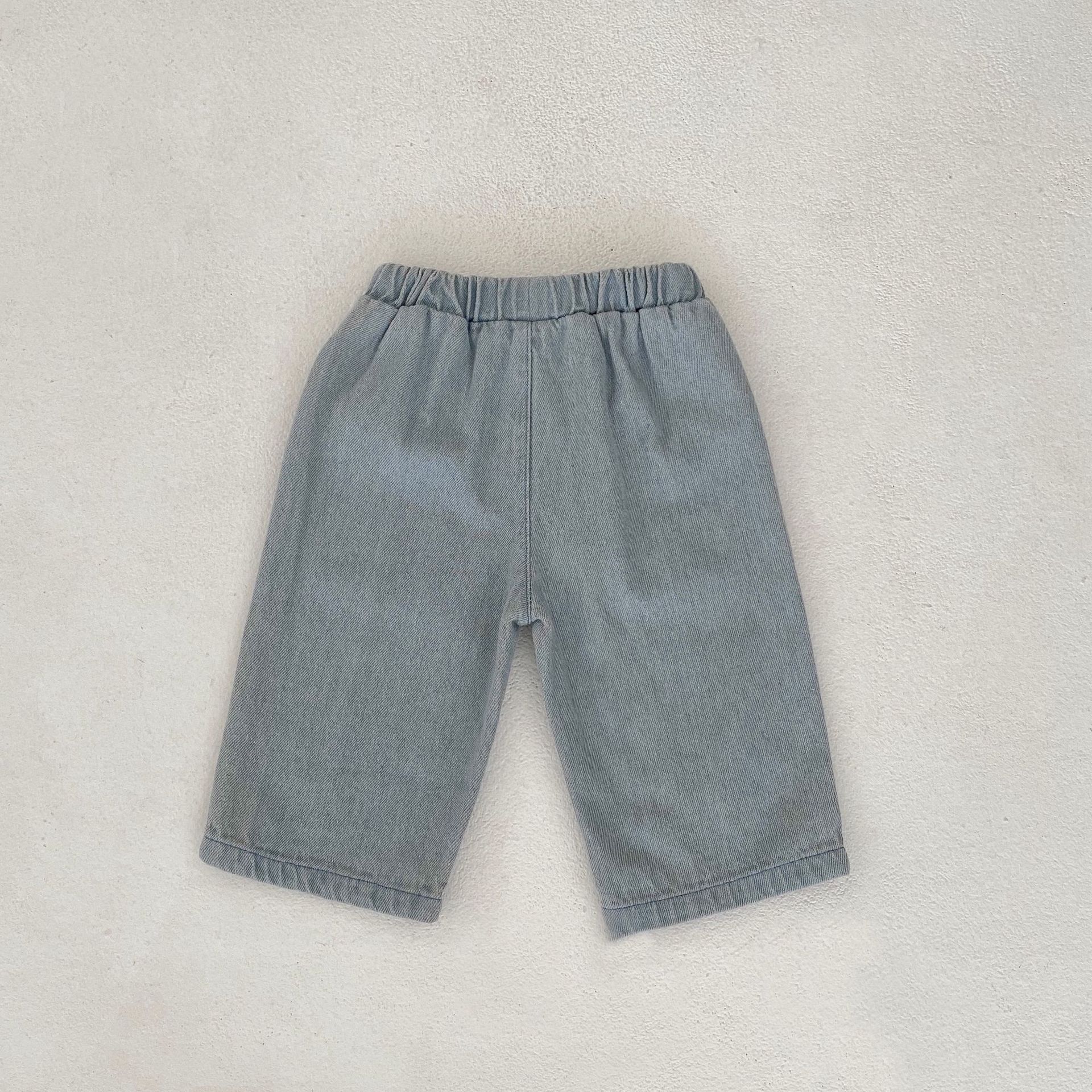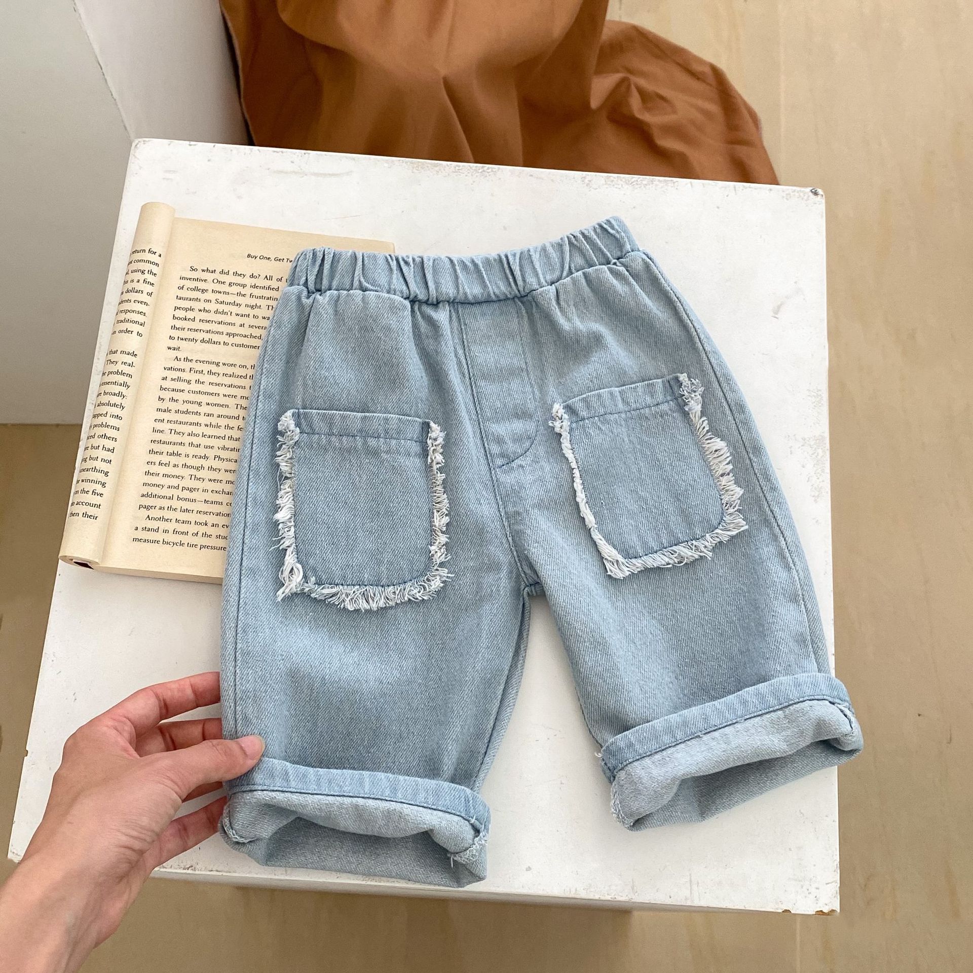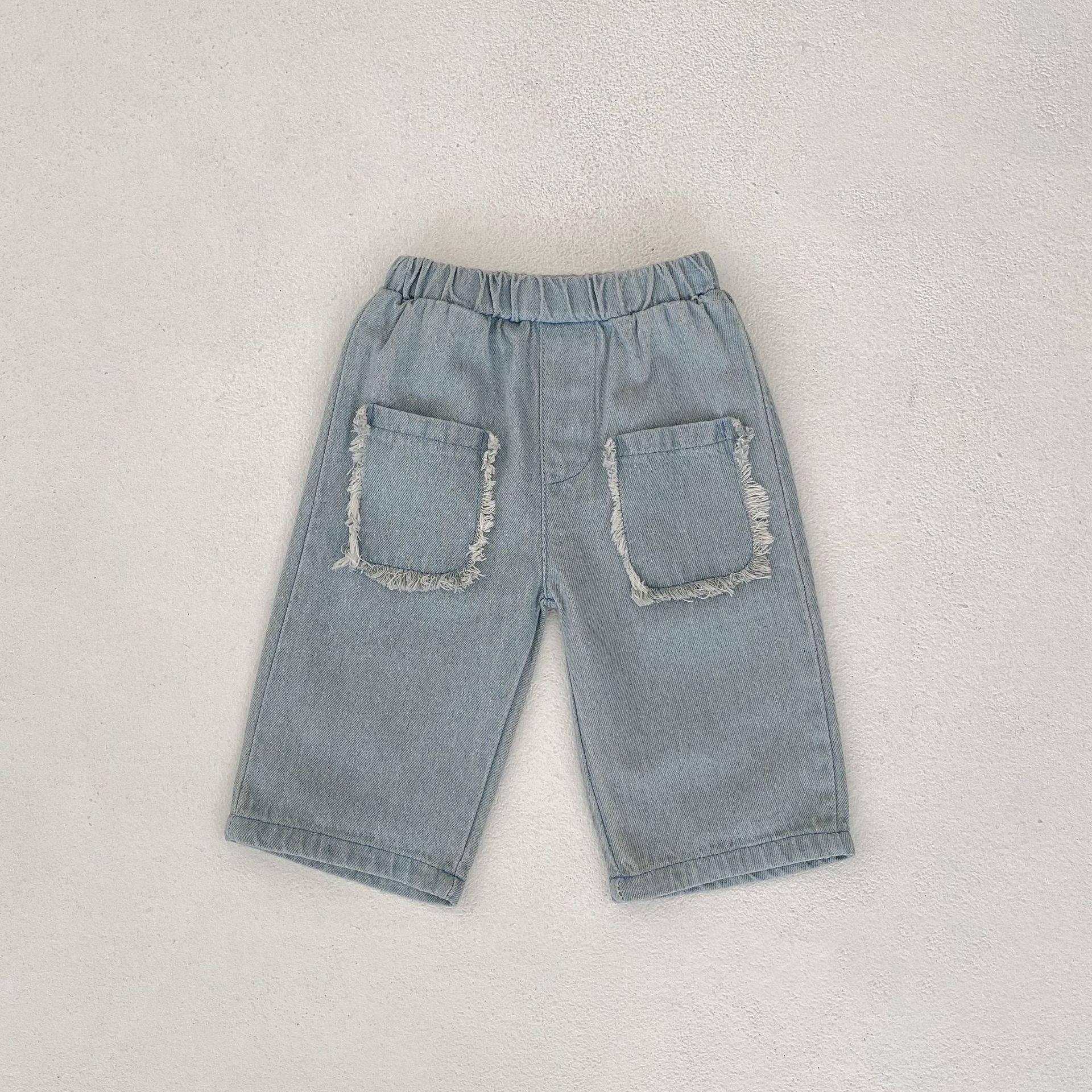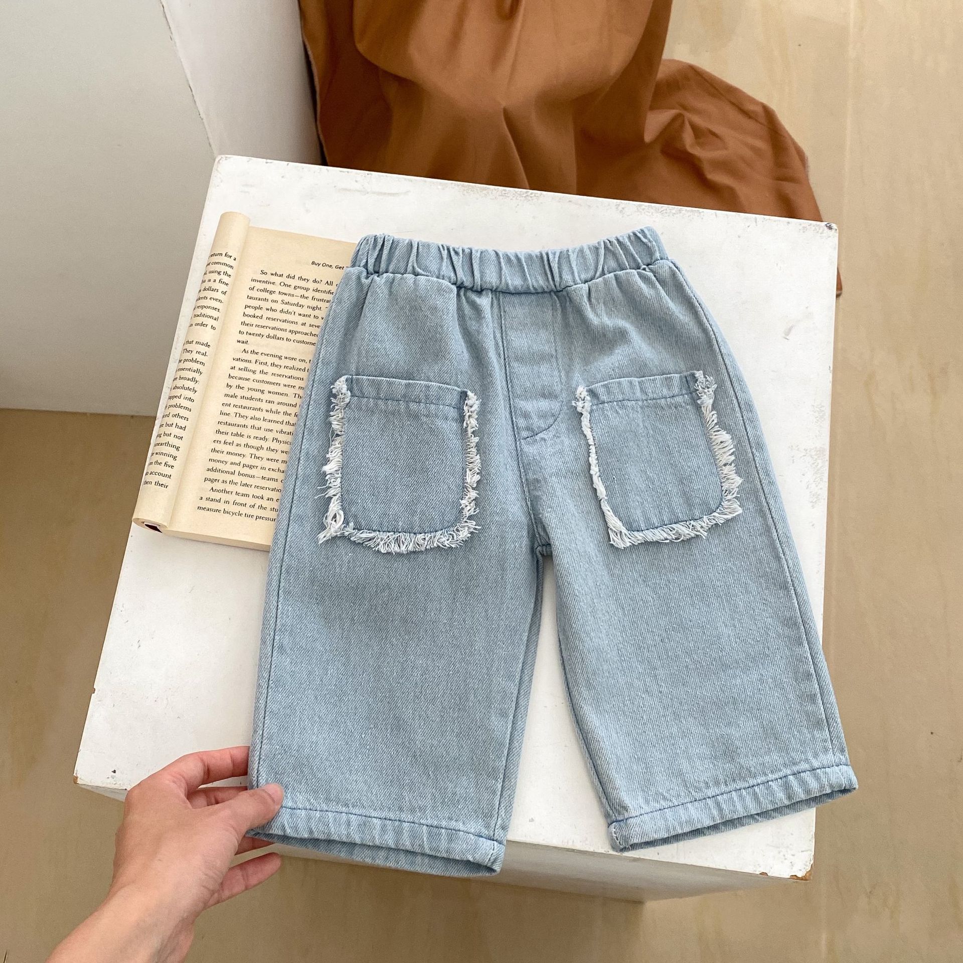 3-24M Baby Girls Raw Edge Pocket Cotton Denim Cropped Pants Baby Boutique Clothing
