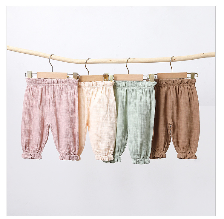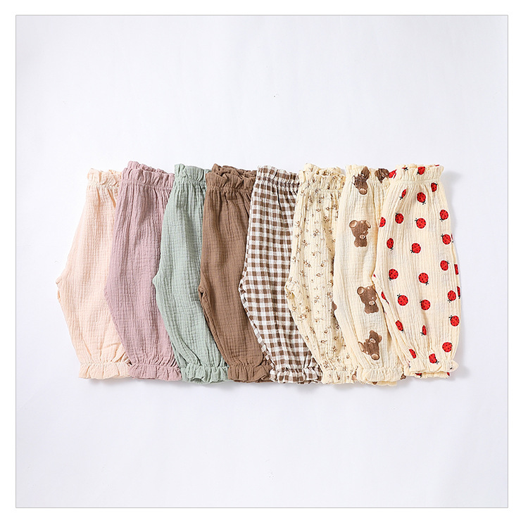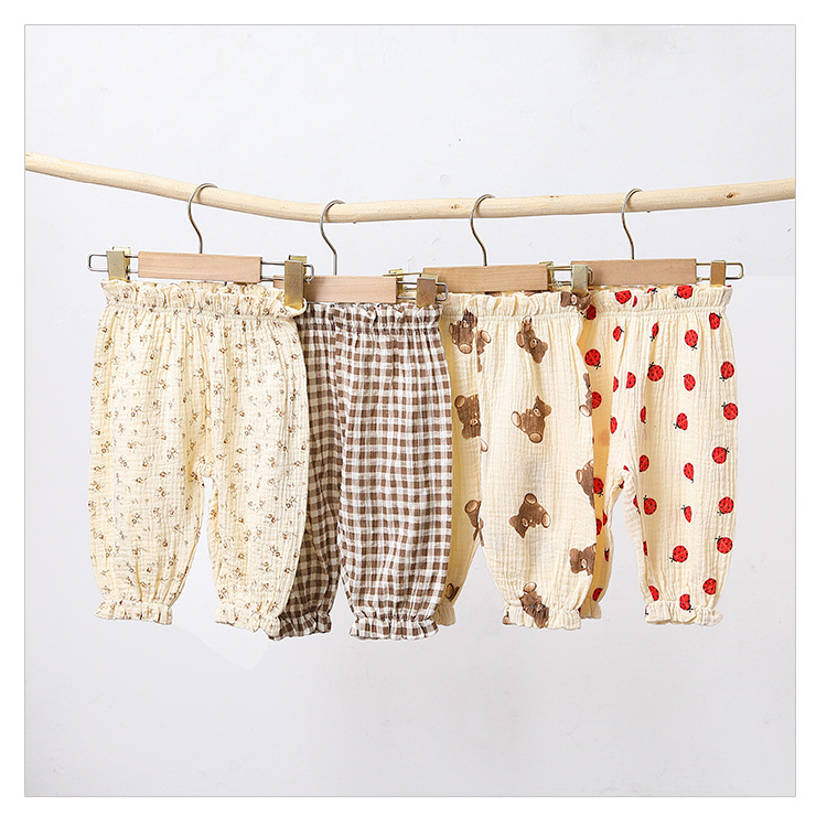3-18M Baby Girls And Boys Muslin Plaid Bear Print Pants  Baby Clothing