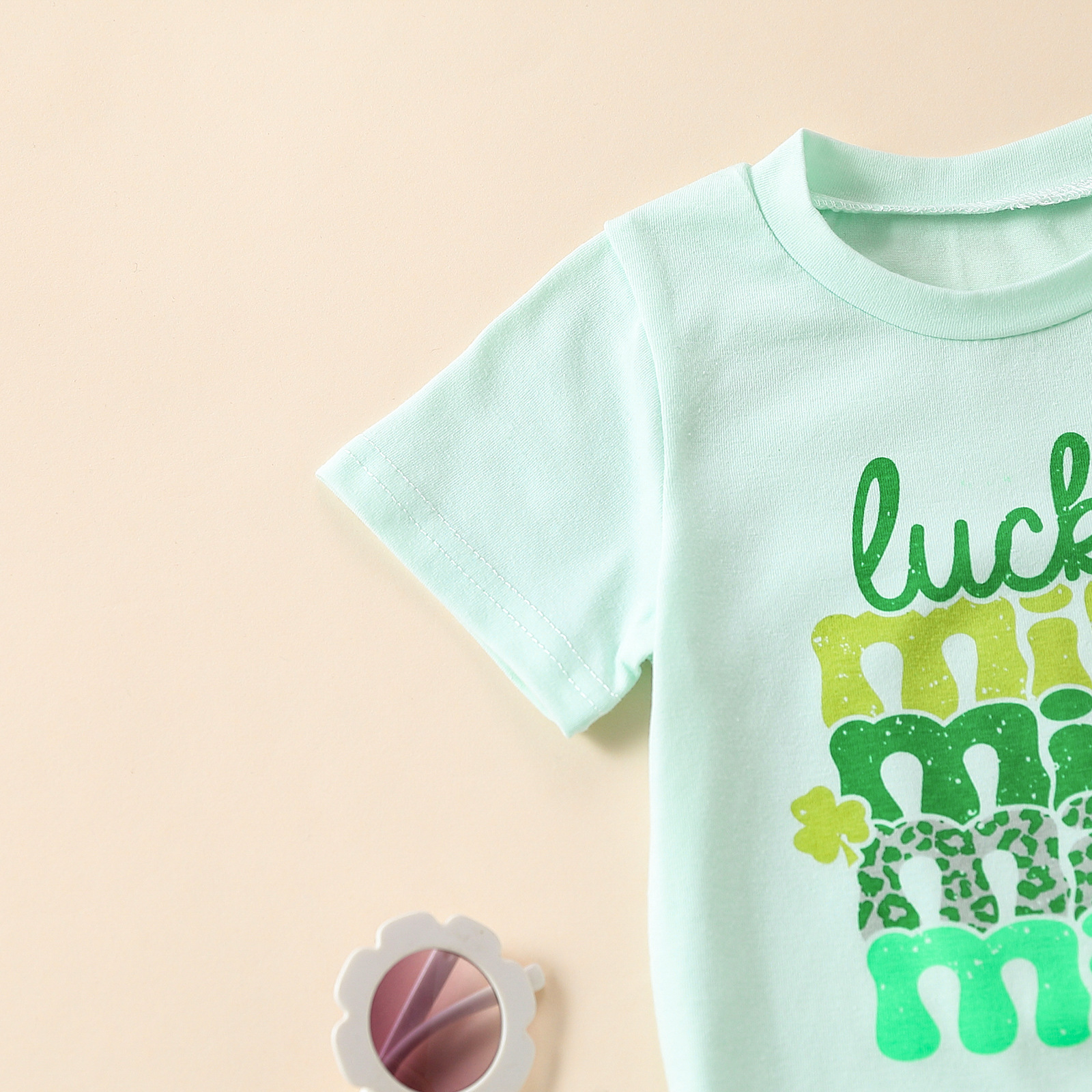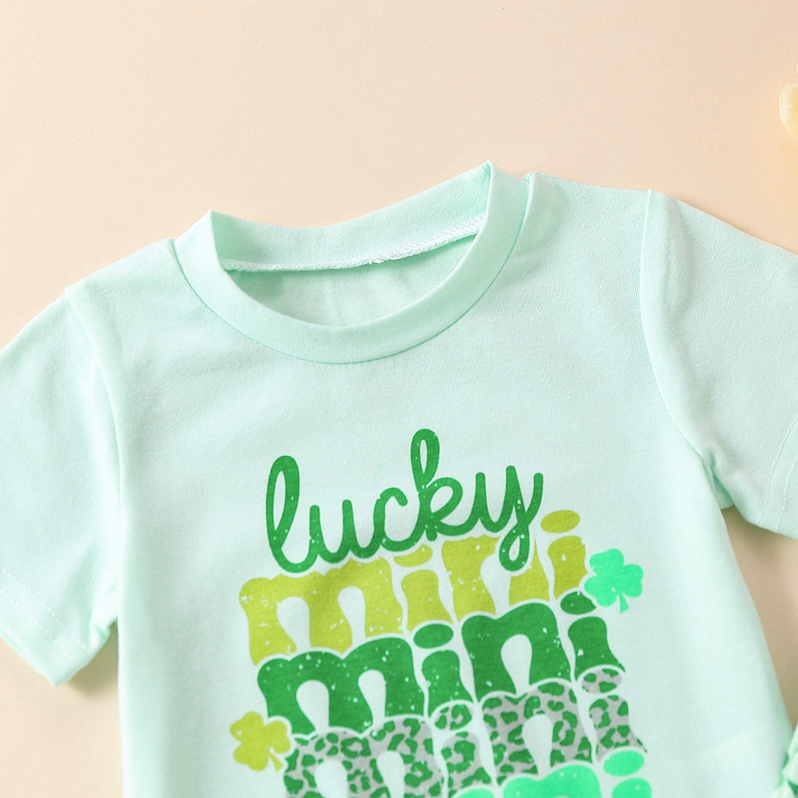 3-24M Baby 2pcs St. Patrick's Day Four Leaf Clover MINI Print T-Shirts & Pants Baby Clothes