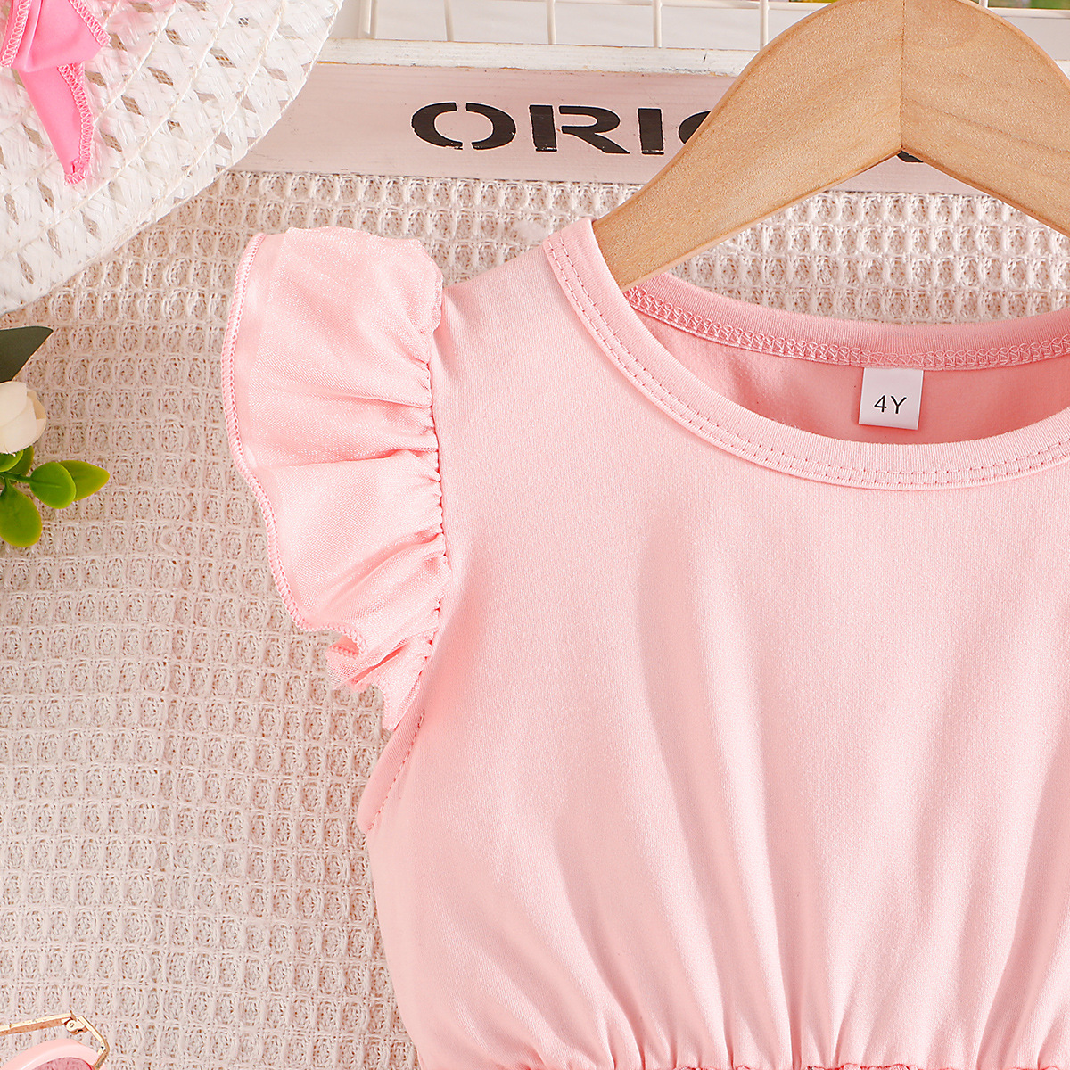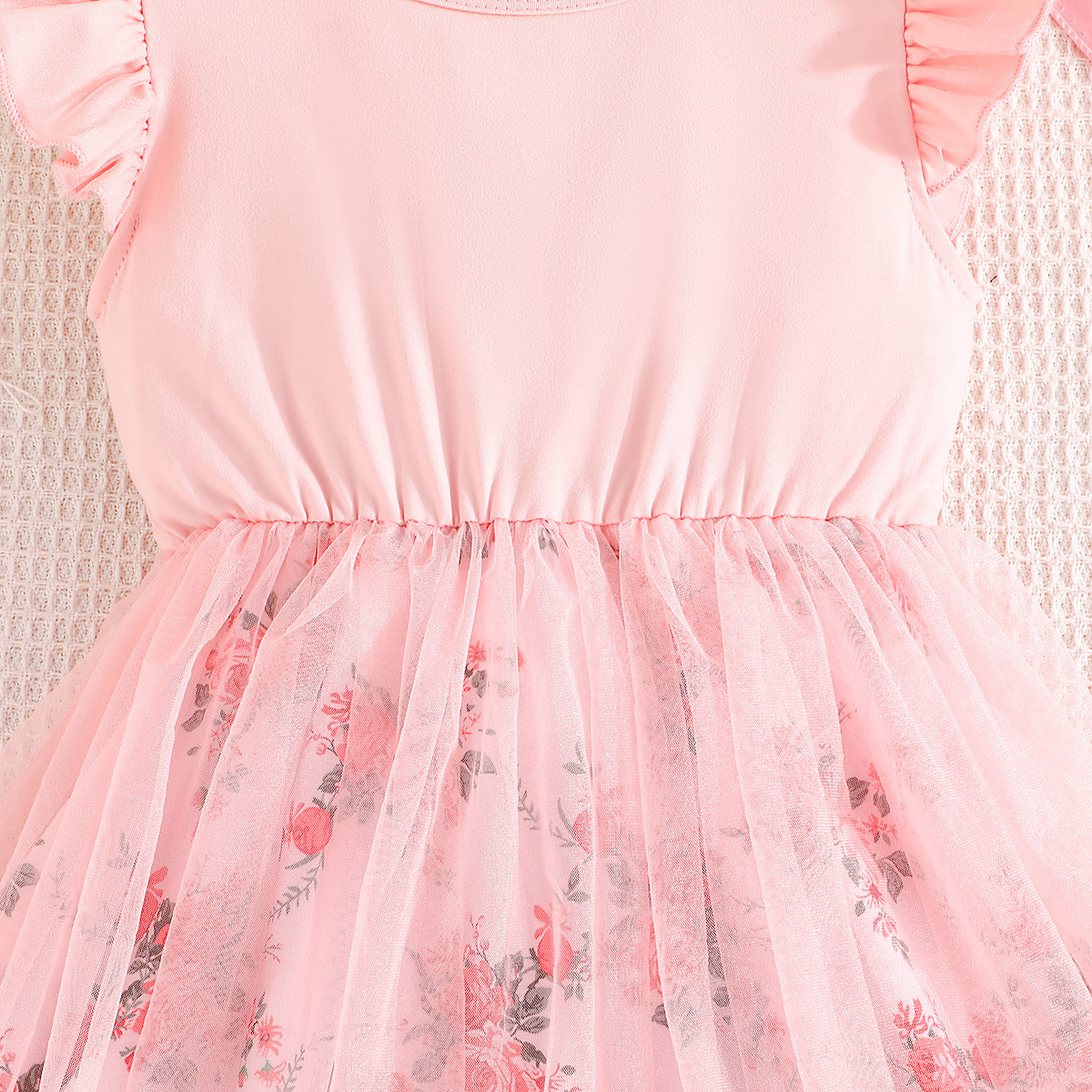 3-7Y Toddler Girls Flower Print Flying Sleeve Mesh Dresses Girls Clothes