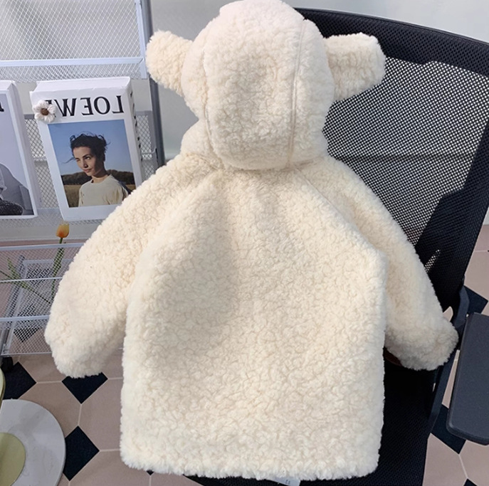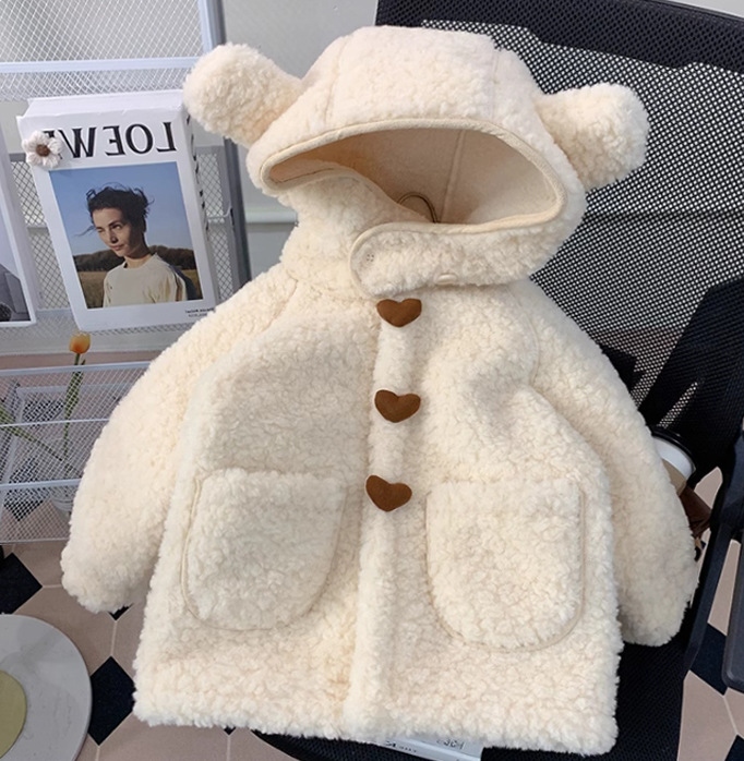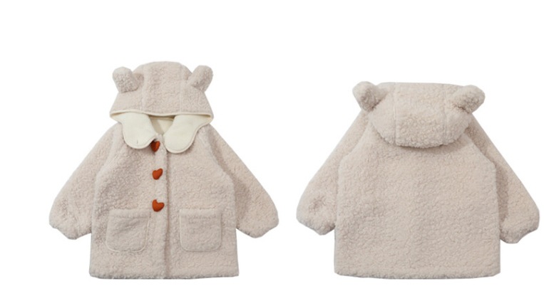 9M-6Y Toddler Girls Solid Color Lambswool Hooded Jackets & Coats Girls Clothing Suppliers
