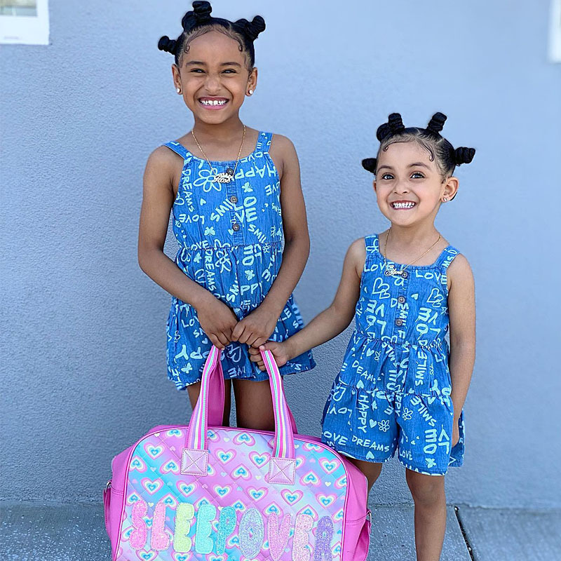 18M-7Y Toddler Girls Letter Sleeveless Denim Sling Rompers Girls Fashion Clothes