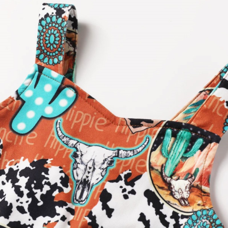 6M-4Y Toddler Girls Cactus Print Flared Jumpsuit Fashion Girl