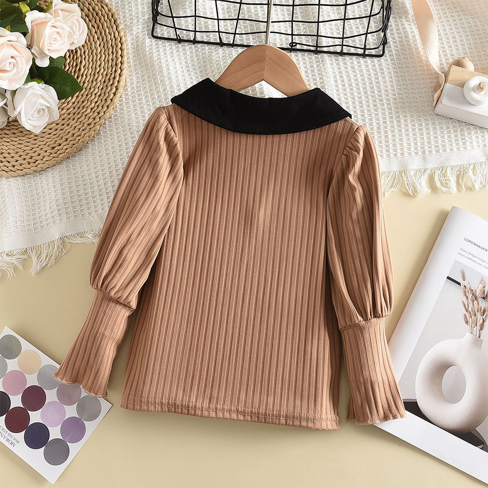 18M-7Y Toddler Girls Retro Doll Collar Long Sleeve Ribbed Bottoming Shirt  Girls Clothes