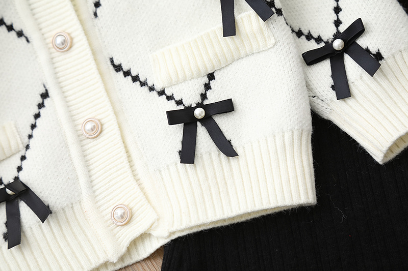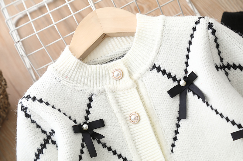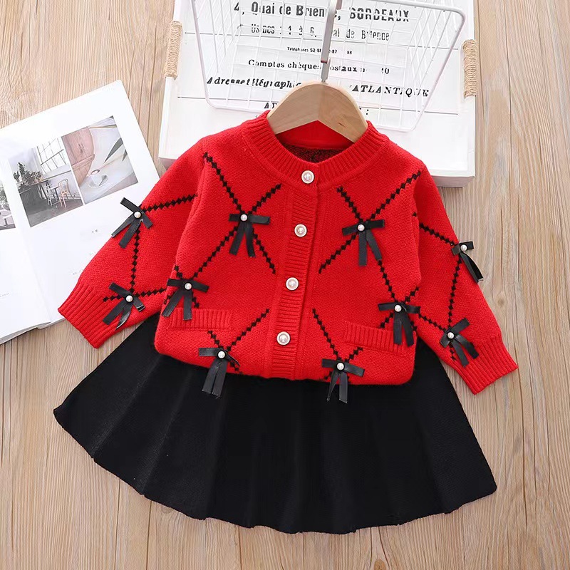 18M-6Y Toddler Girls Sets Knitted Bow Cardigan Sweater And Skirts  Girls Fashion Clothes
