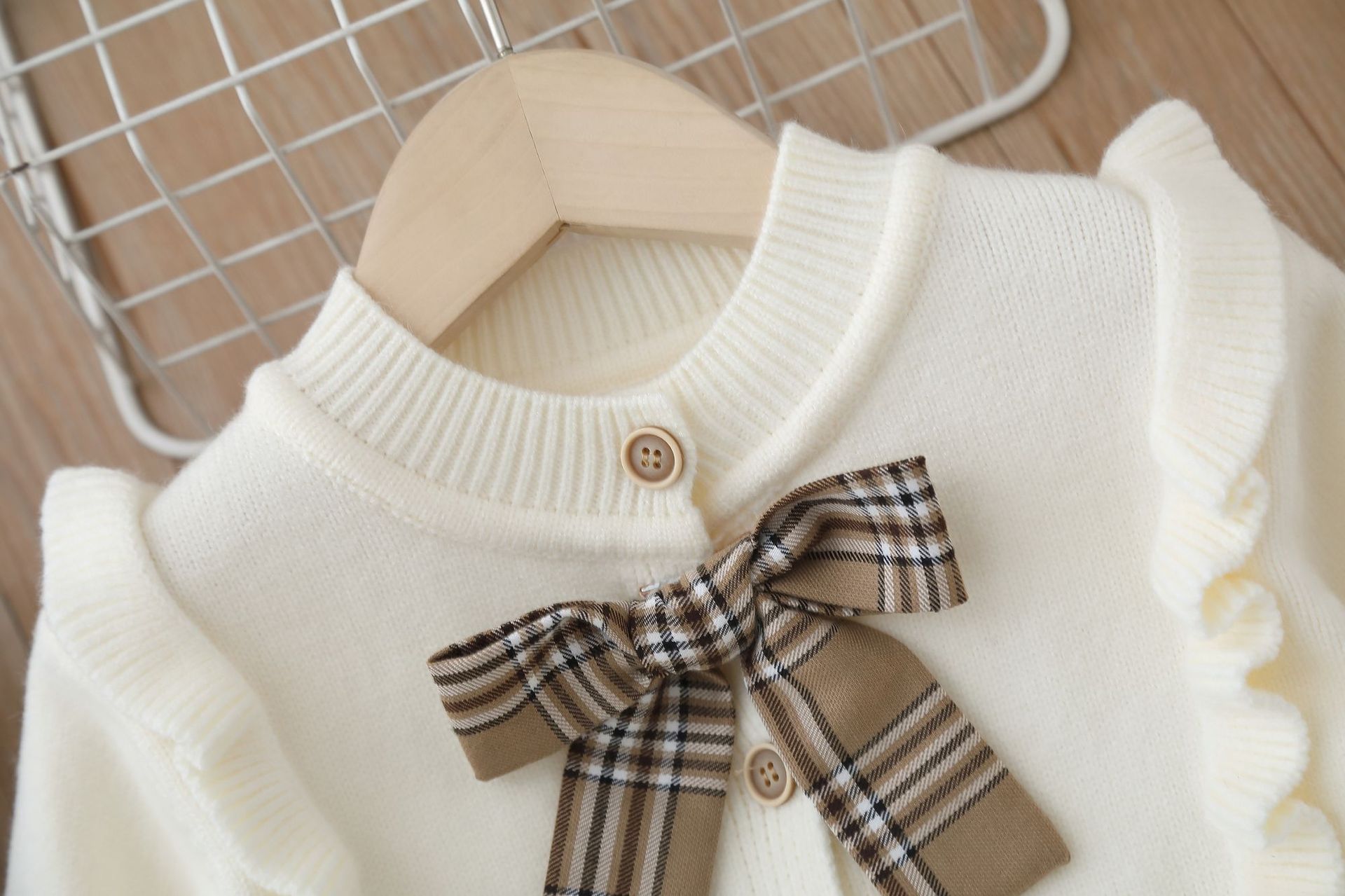 18M-6Y Toddler Girls Knitted Sets Bow Sweater Cardigan Plaid Skirts  Girls Clothes