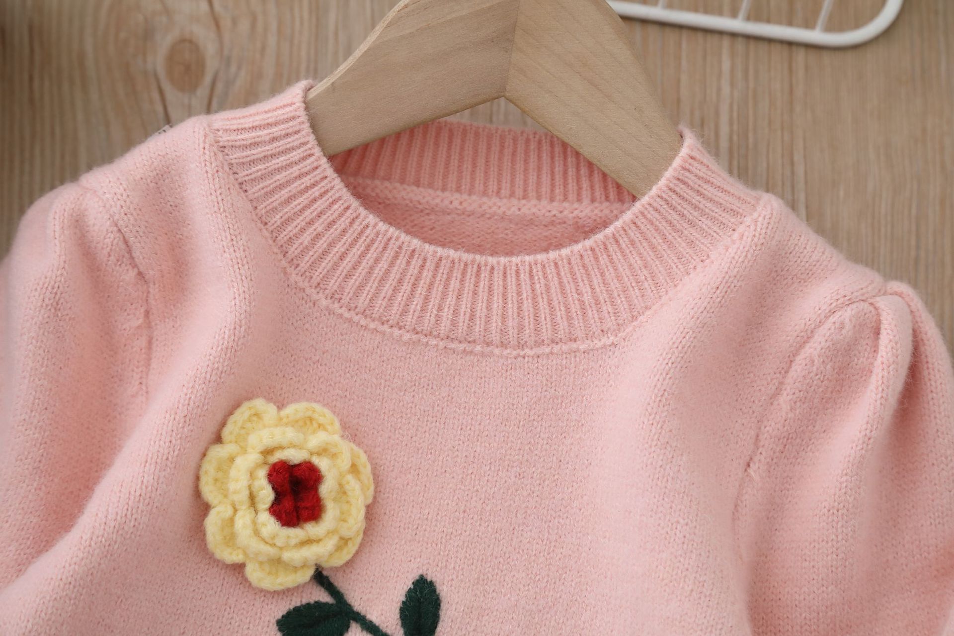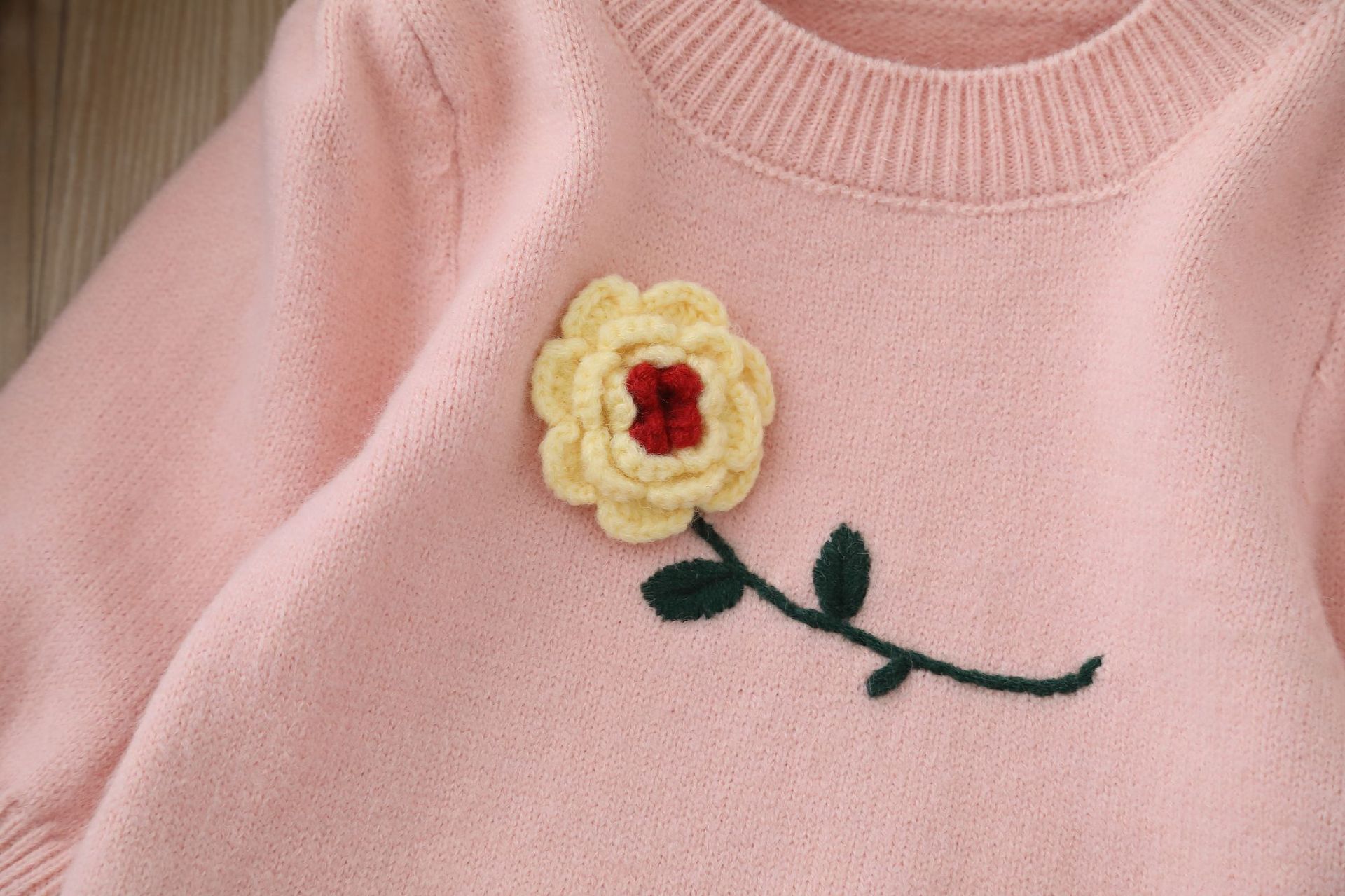9M-5Y Toddler Girls Handmade Flower Knitted Sweater Dress Girls Clothes