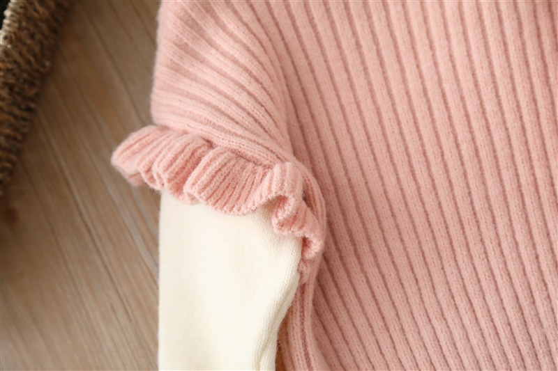 18M-6Y Toddler Girls Knitted Sets Bow Contrast Lapel Sweater Flared Pants Girls Clothes