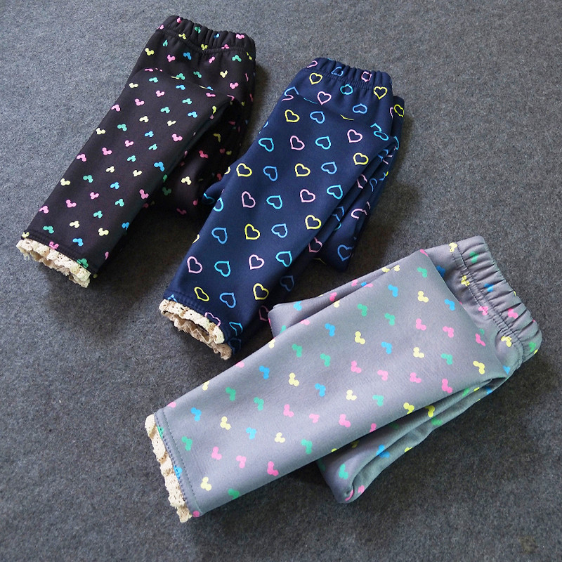 2-13Y Big Kids Girls Love Heart Polka Dots Fleece Leggings  Kids Boutique Clothing