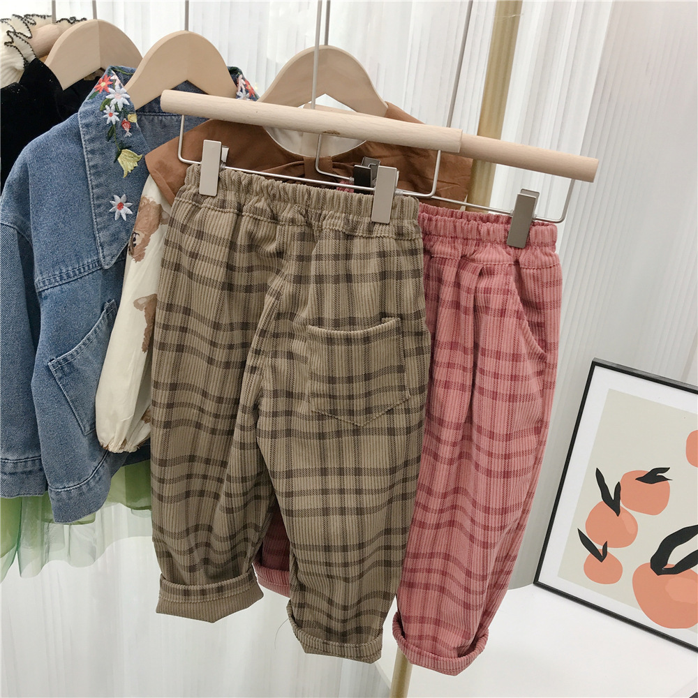 18M-7Y Toddler Girls Plaid Corduroy Pants Girls Clothes