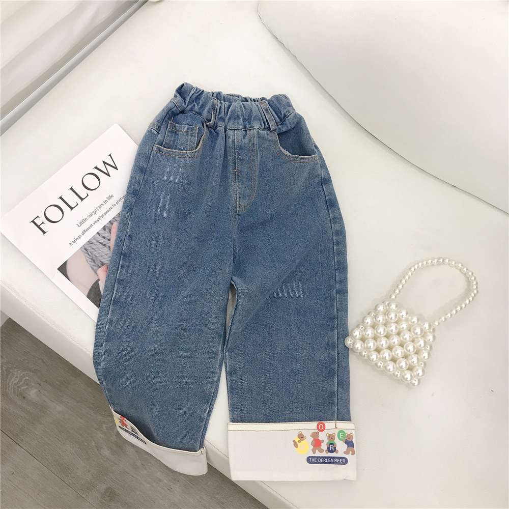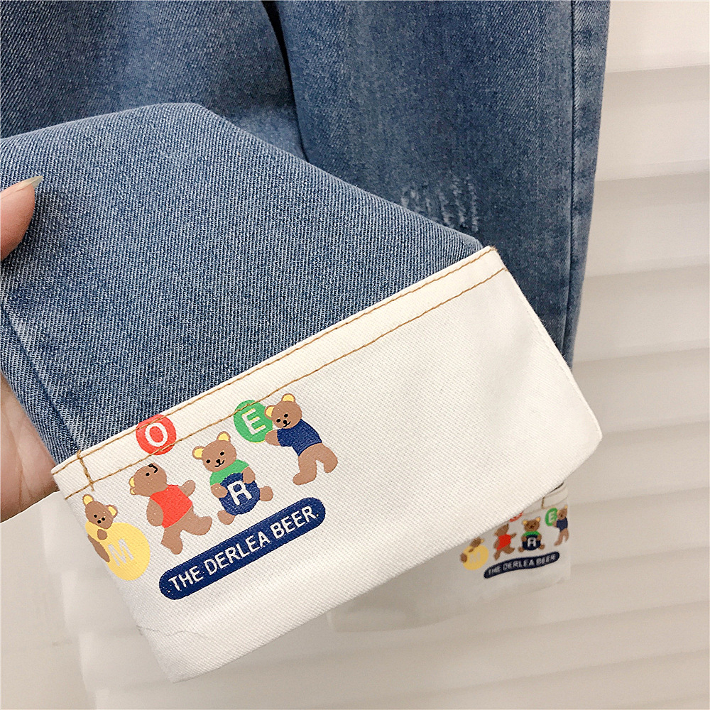 18M-6Y Toddler Girl Cartoon Bear Print Wide-Leg Jeans Girls Clothes