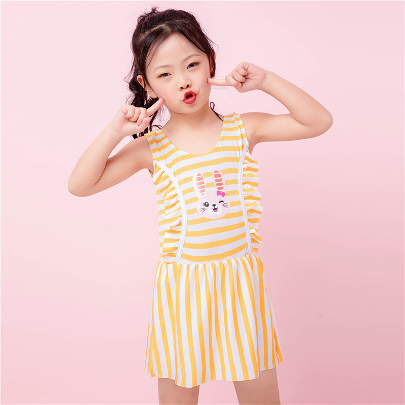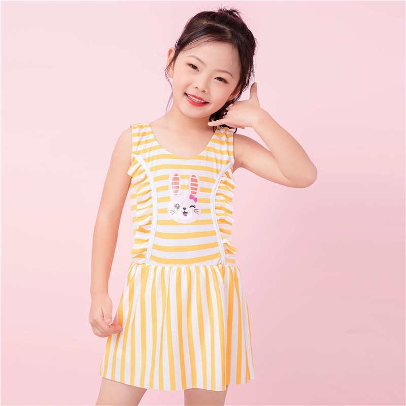 Don't miss out on this 5-7Y Bunny Cartoon Print Sleeveless Lotus Swimwear Dress Wholesale Kids Boutique Clothing. Made of cotton material, so don't worry that it will harm your baby's skin. Basics will never be out of style.