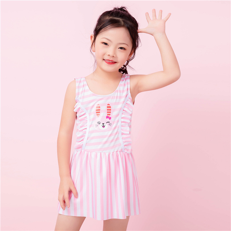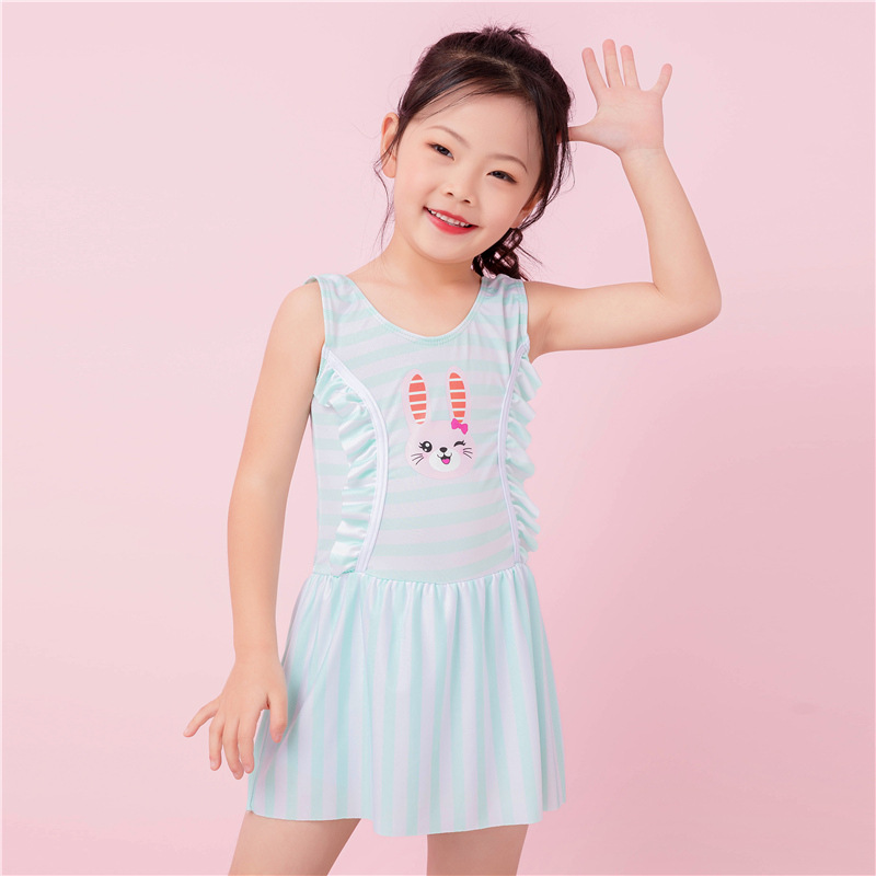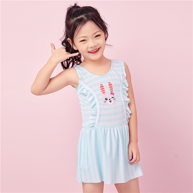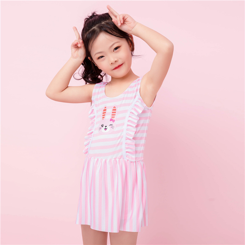 5-7Y Bunny Cartoon Print Sleeveless Lotus Swimwear Dress Kids Boutique Clothing