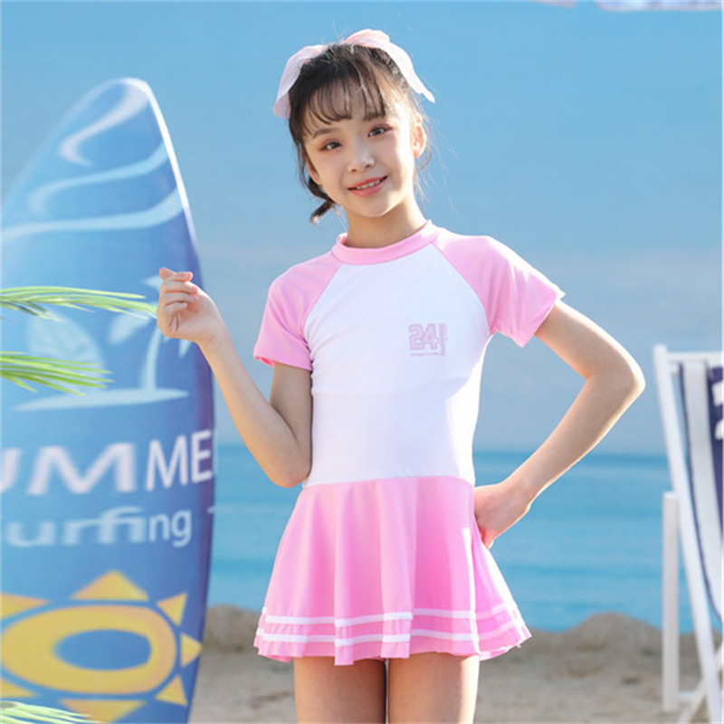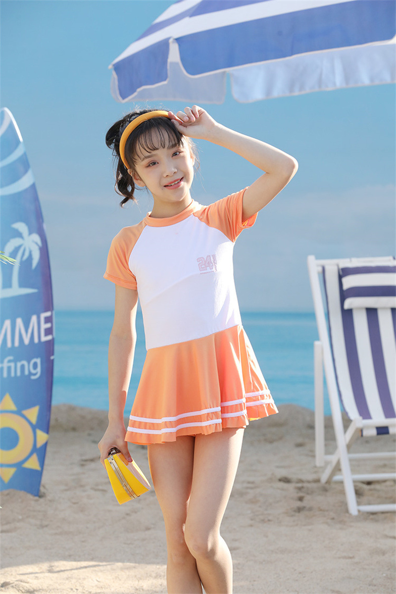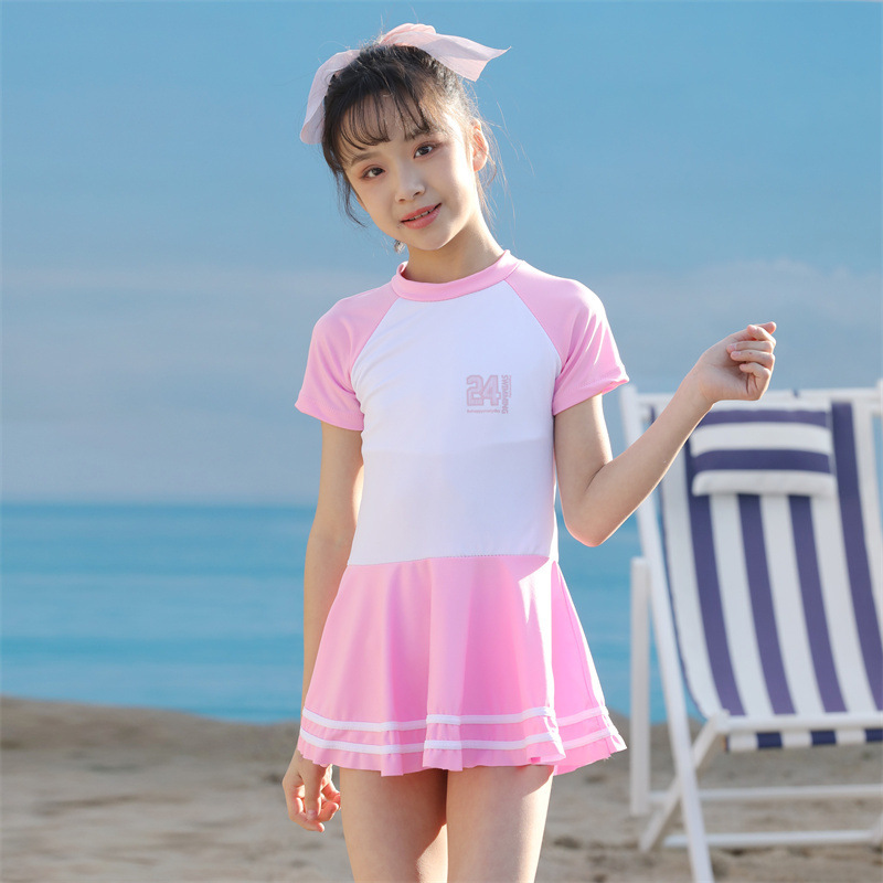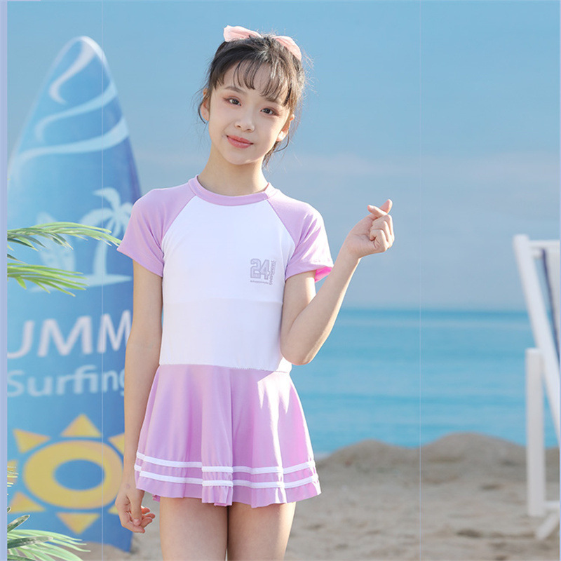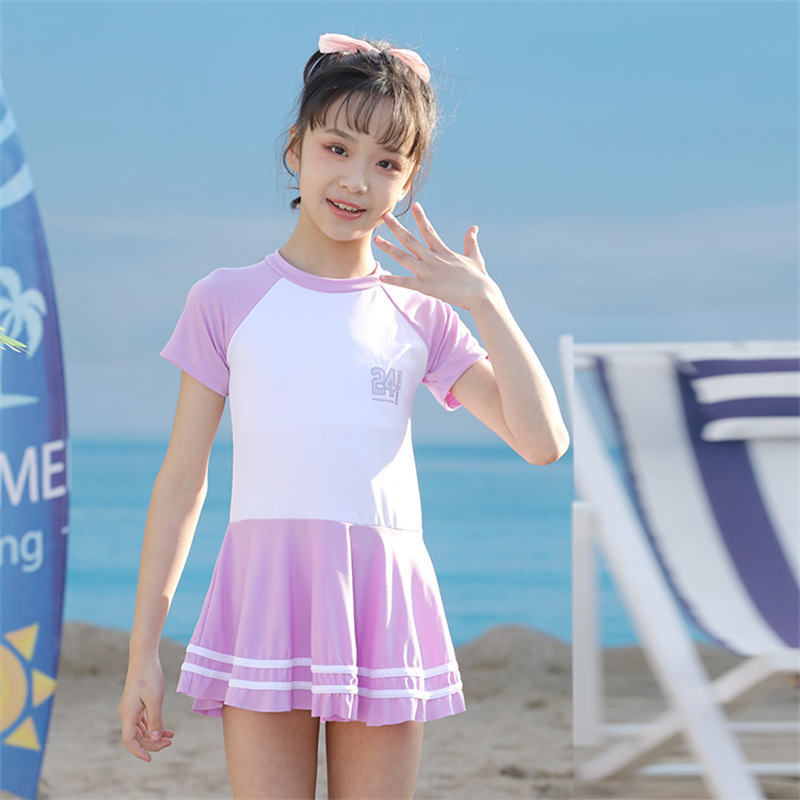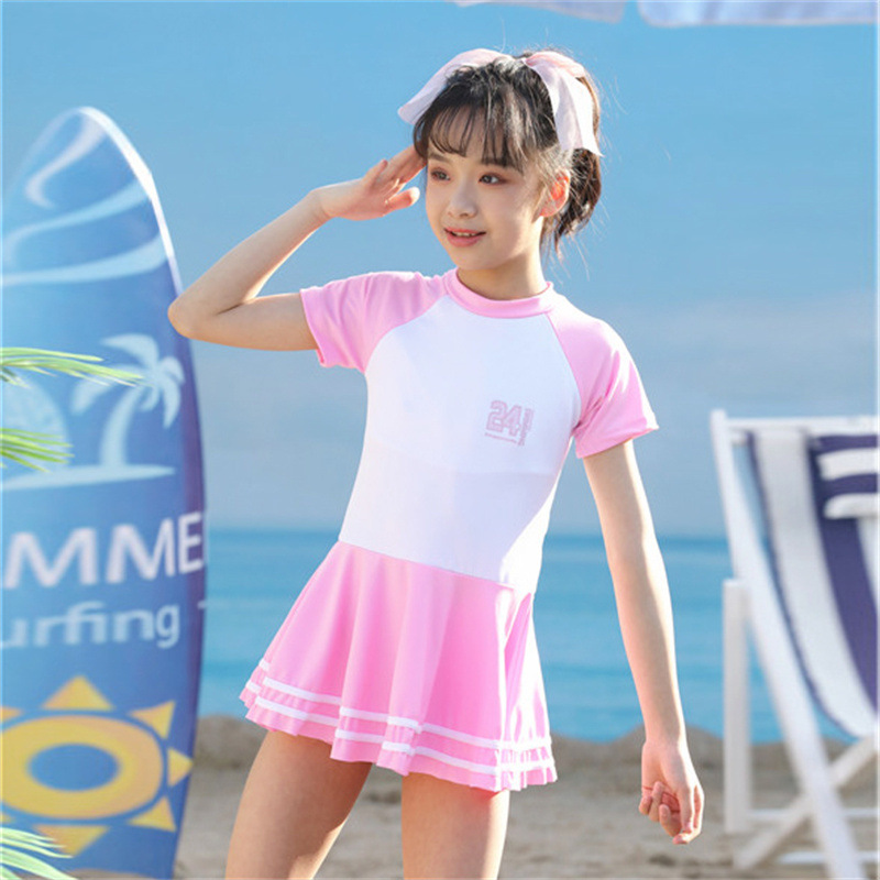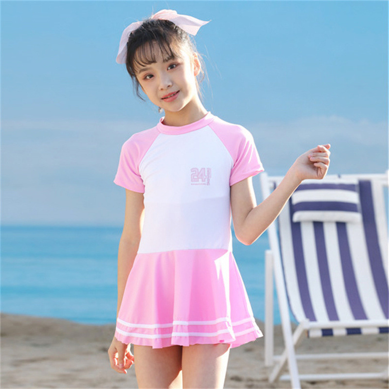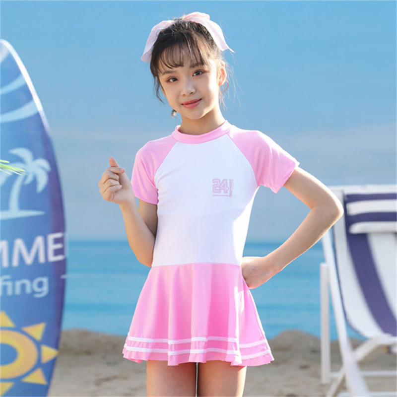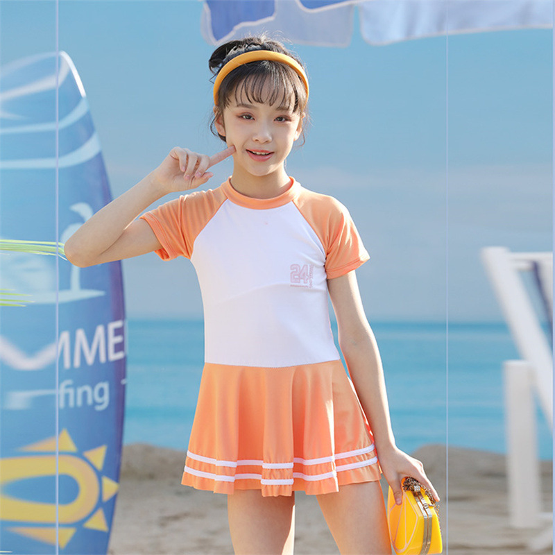 6-10Y Colorblock Short Sleeve Striped Skirt Swimwear Dress Kids Boutique Clothing