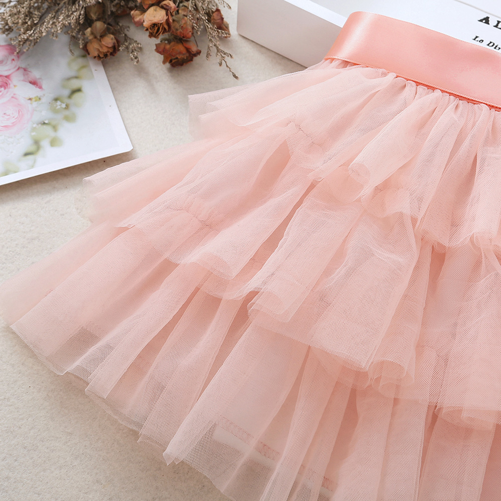 18M-6Y Toddler Girls Summer Style Multi-Layer Mesh Skirt With Belt Girls Clothes