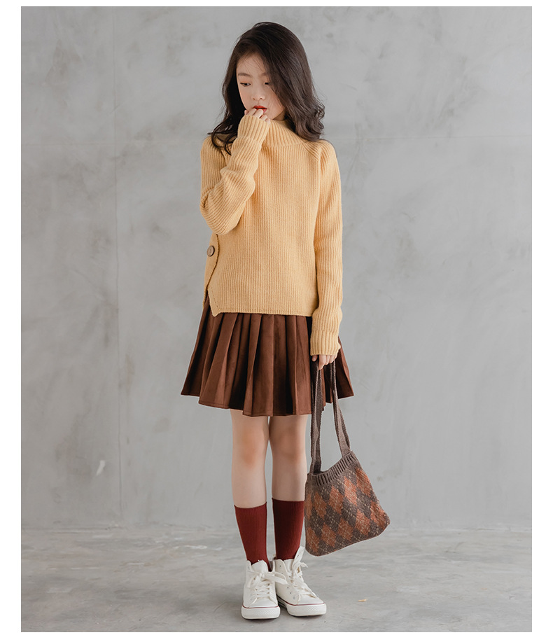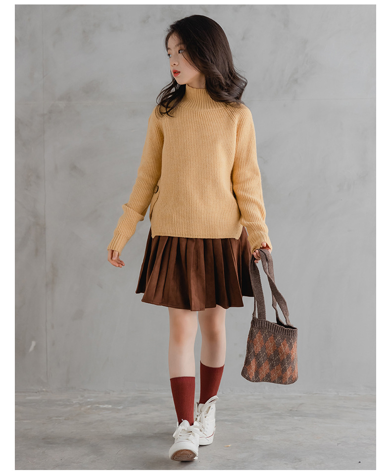 4-14Y Half Turtleneck Knitwear Sweaters And Solid Color Skirt  Kids Boutique Clothing