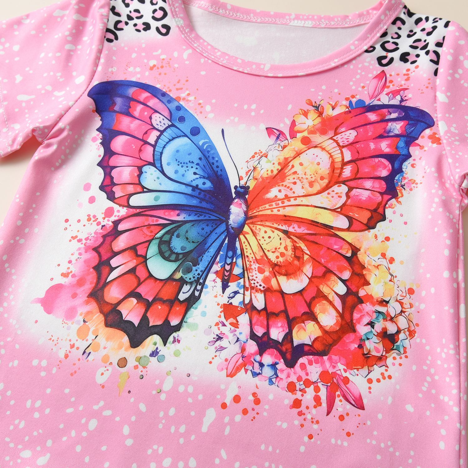 18M-6Y Toddler Girls Sets Butterfly Print T-Shirt Faux Denim Flared Pants Girls Clothes