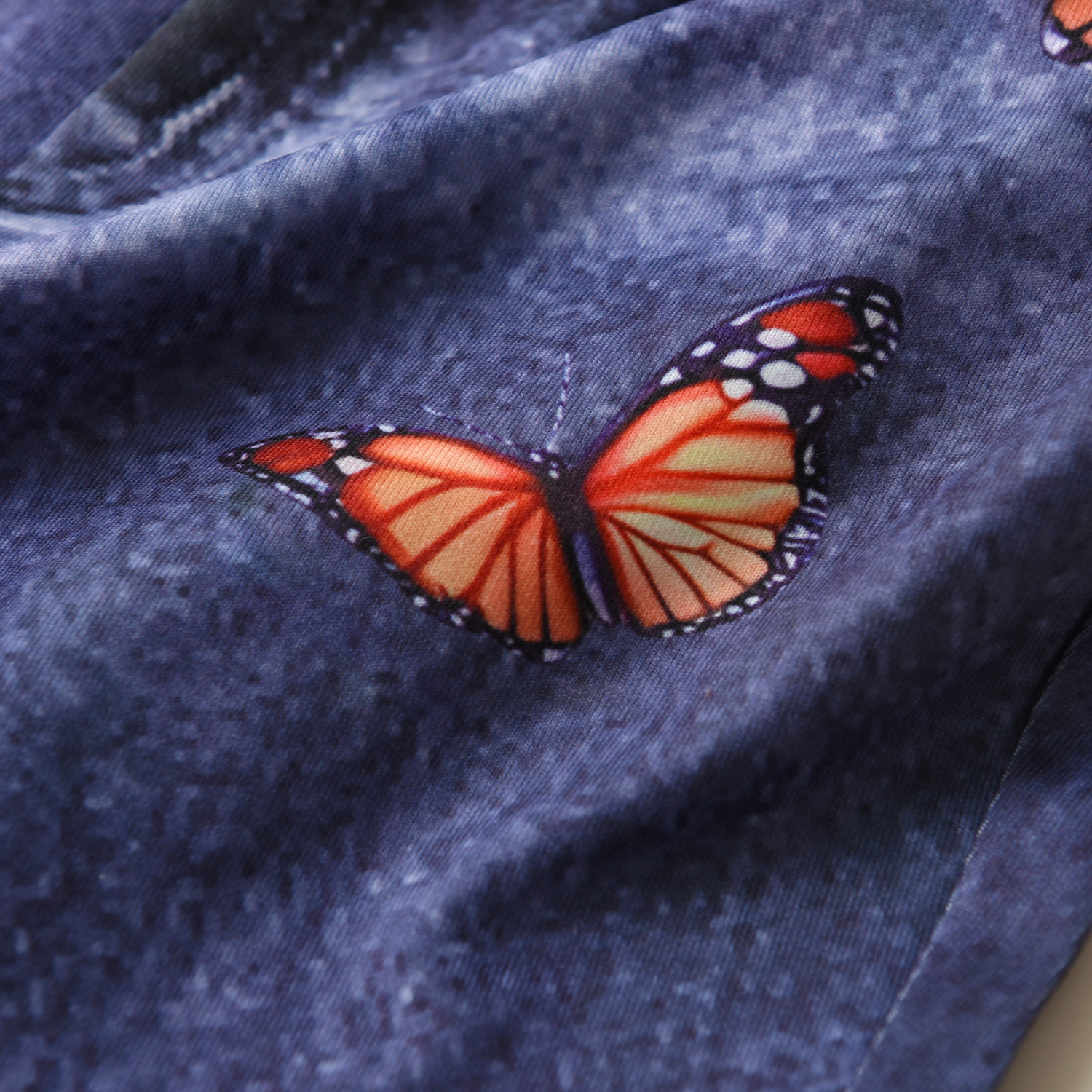 18M-6Y Toddler Girls Sets Butterfly Print T-Shirt Faux Denim Flared Pants  Girls Clothes