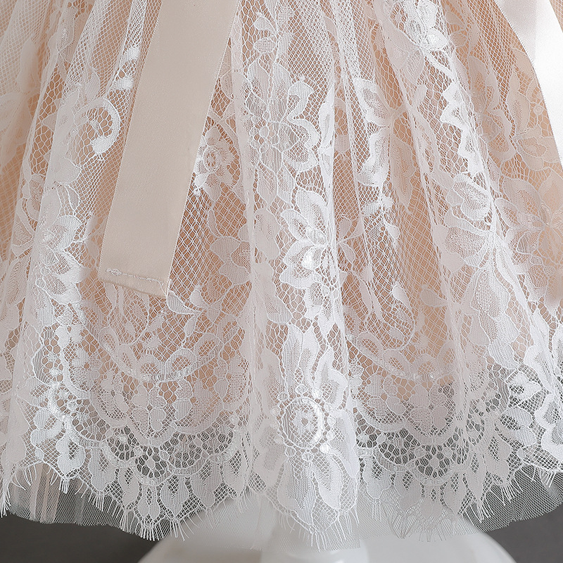 2-5Y Toddler Girls Long Sleeve Embroidered Lace Princess Dress With Bow Girls Clothes