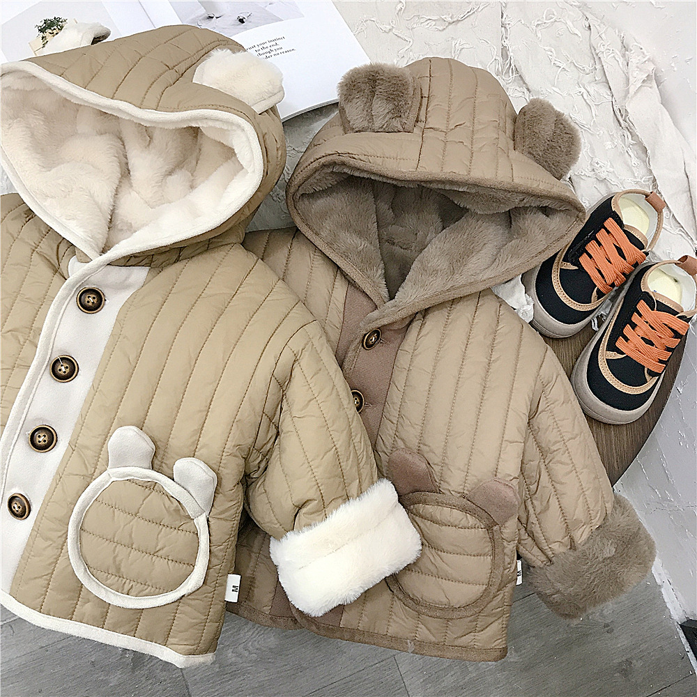 9M-5Y Toddler Boys Cotton Hooded Jacket With Fleece Boys Clothing