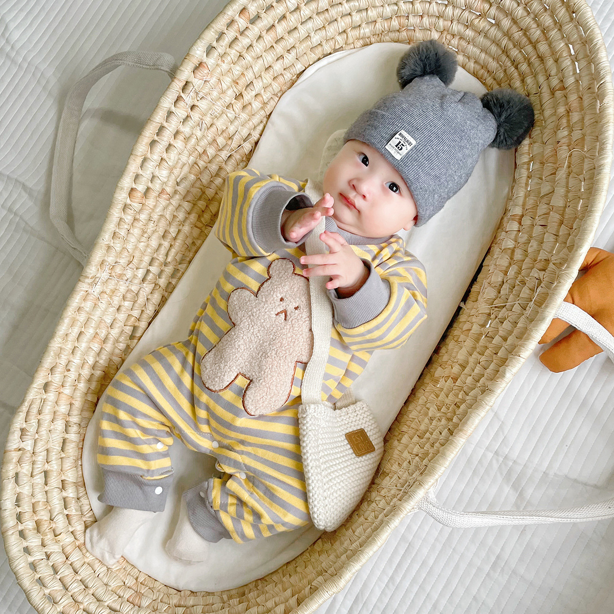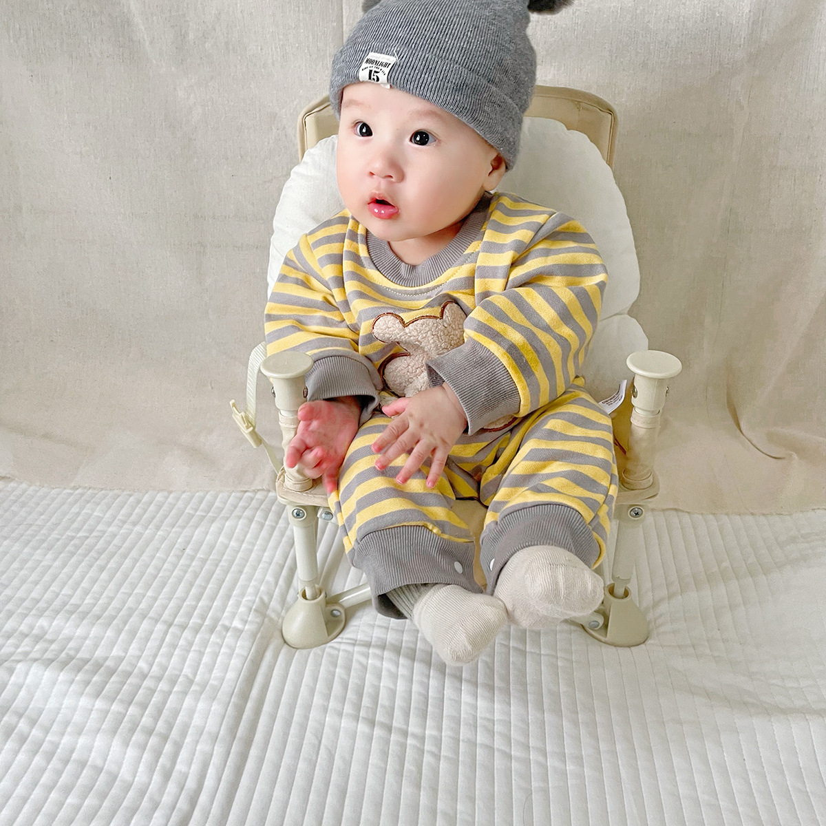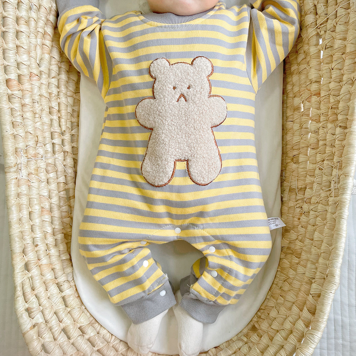 Striped Bear Print Newborn Jumpsuit Kidswear