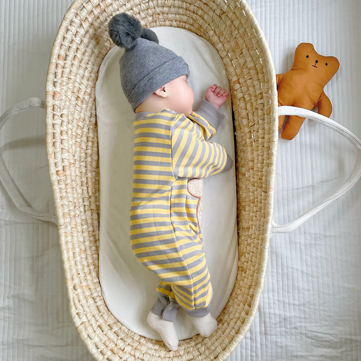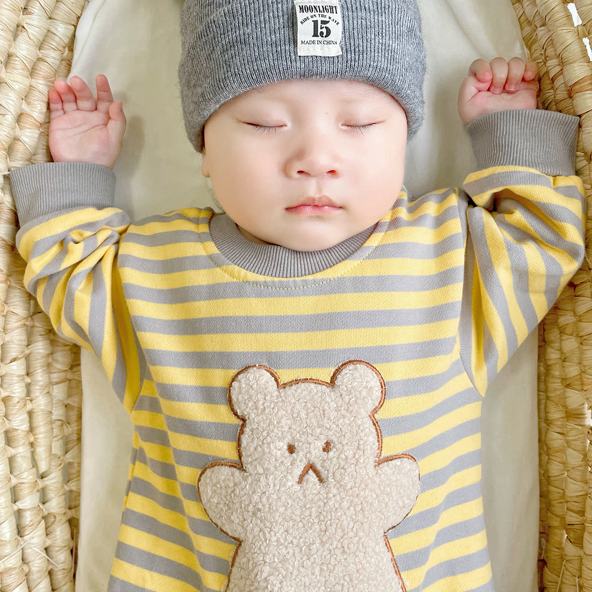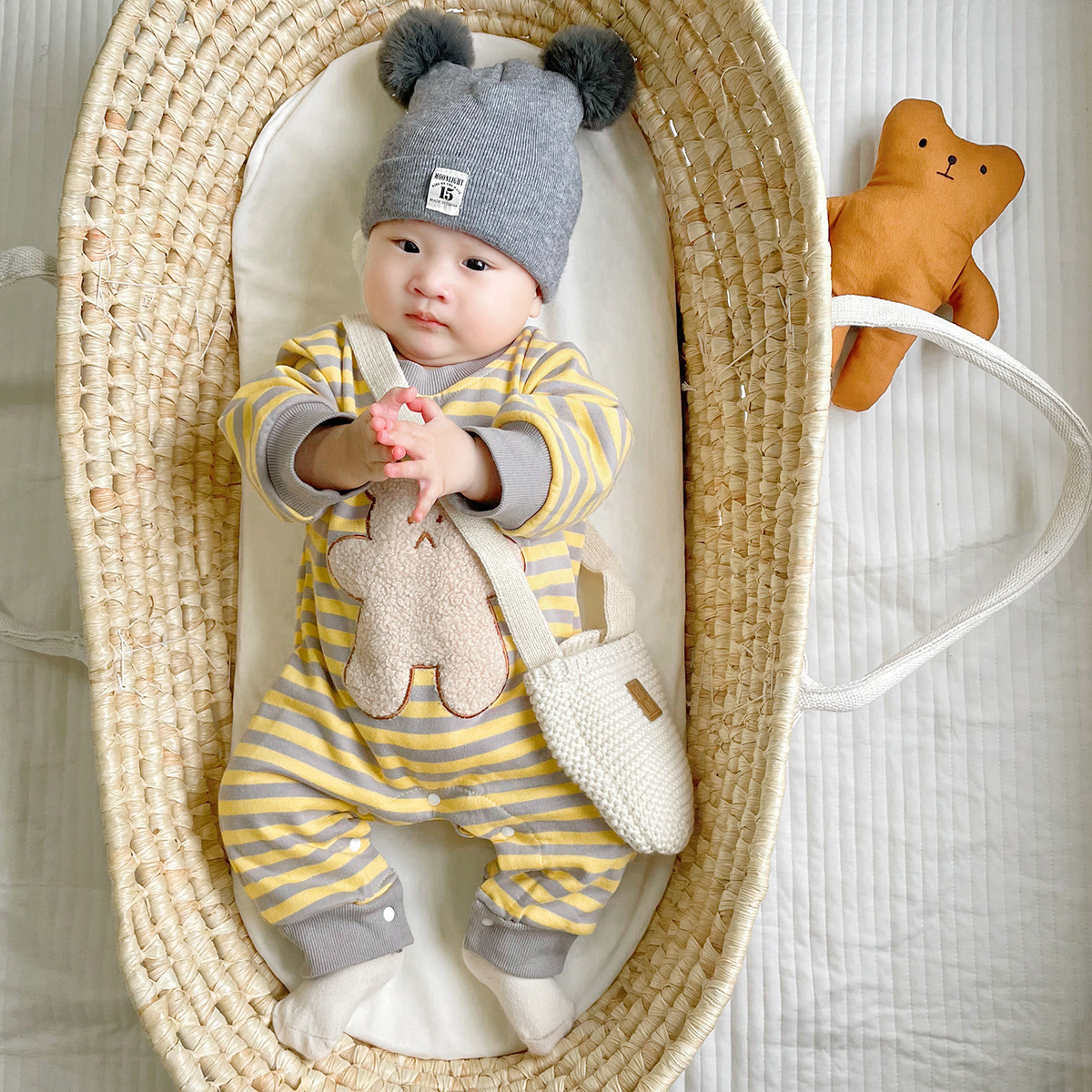 Striped Bear Print Newborn Jumpsuit Kidswear