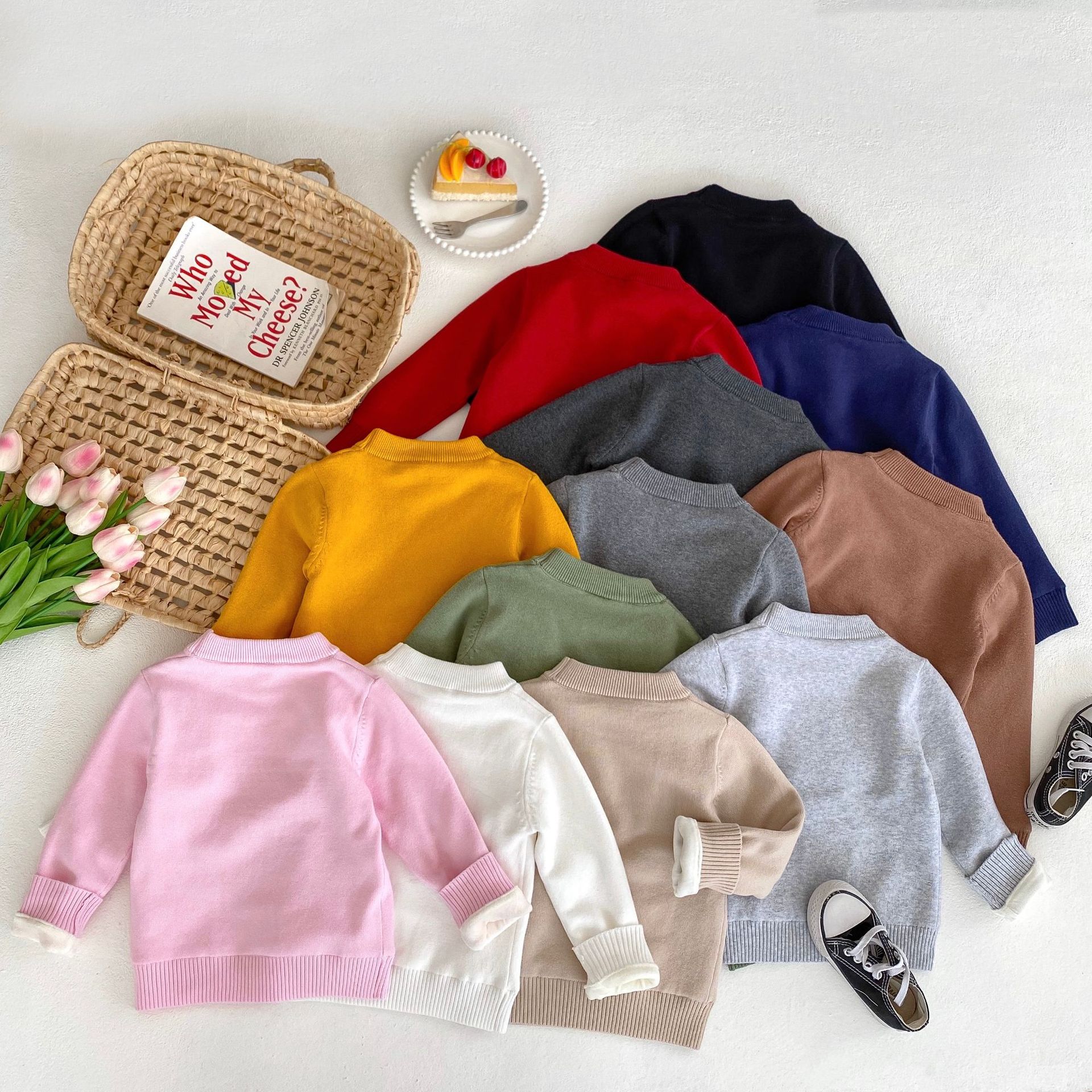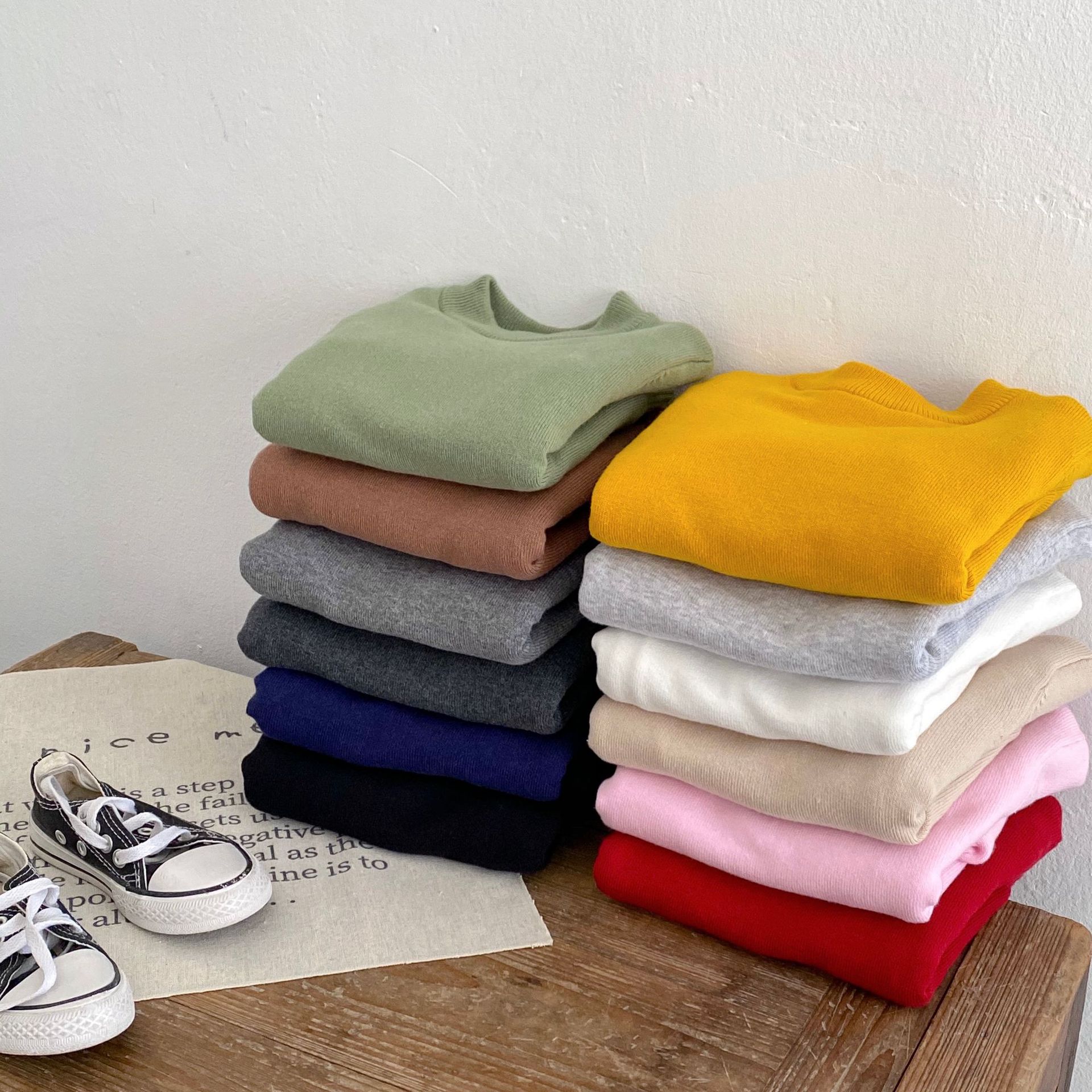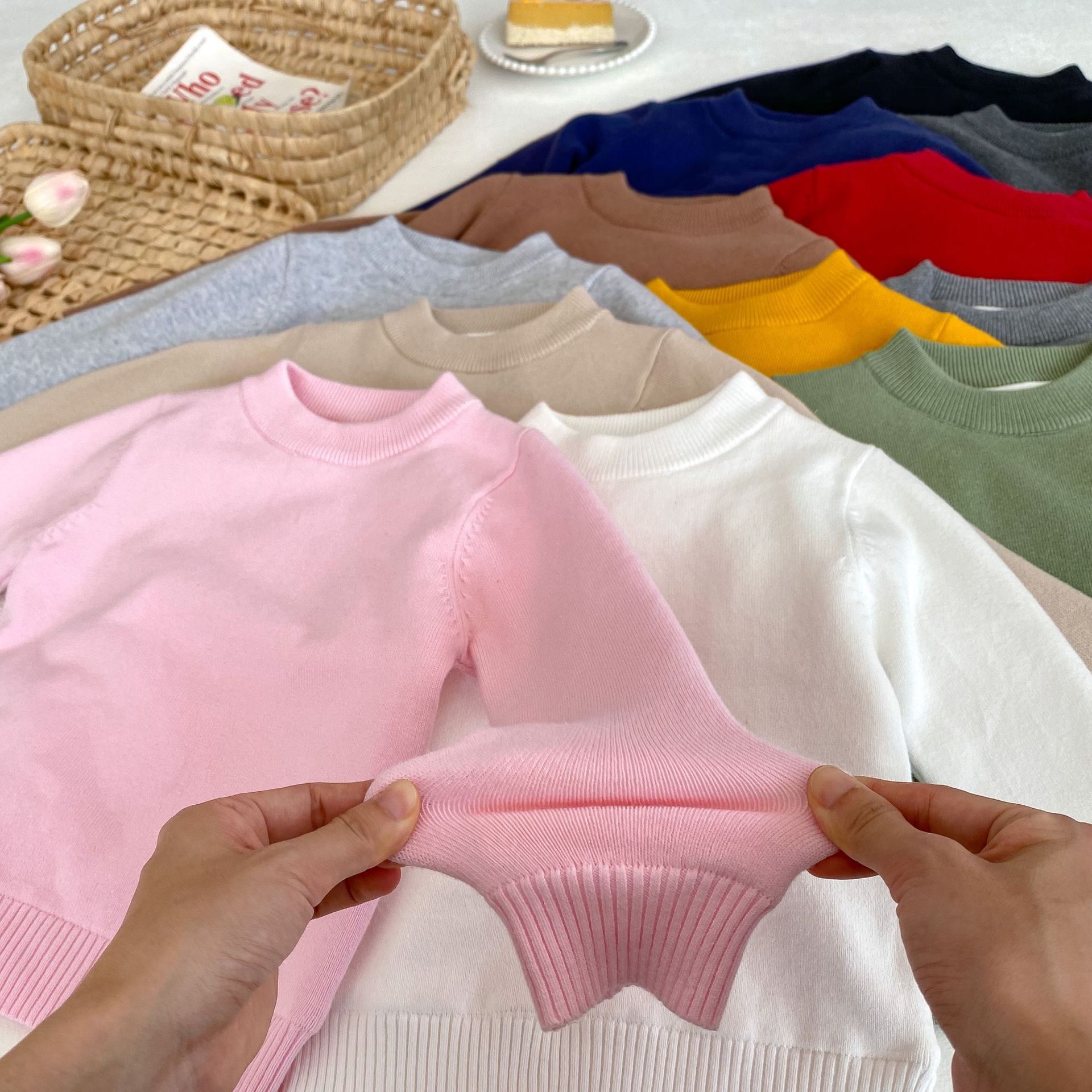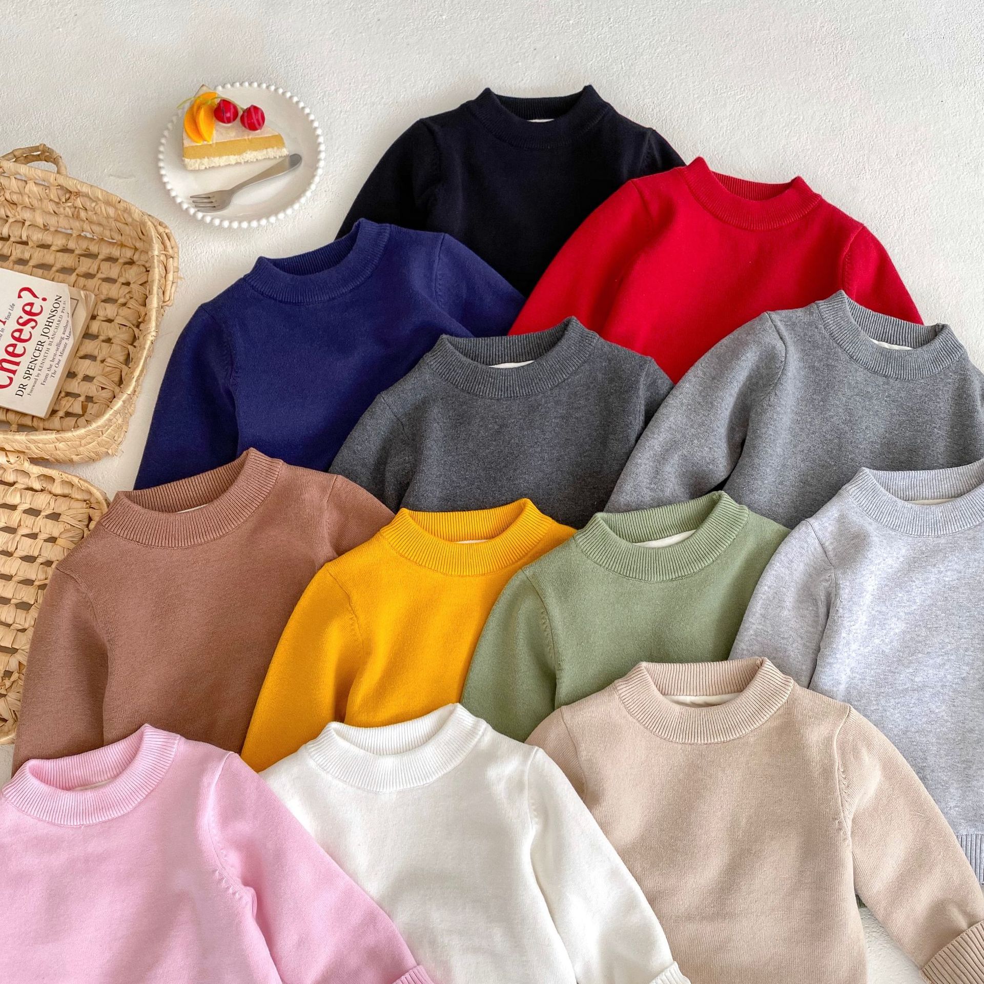 2-10Y Kids Knitted Sweaters Solid Color Pullover Bottoming Tops  Toddler Boutique Clothing