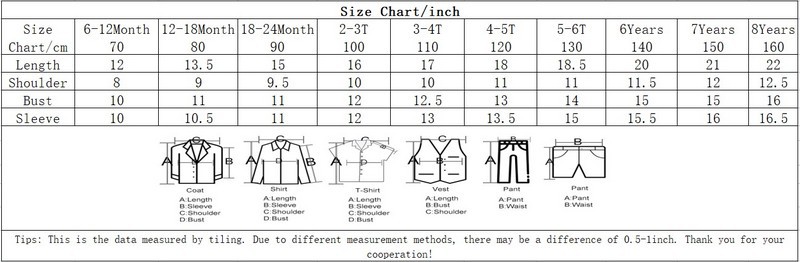 • This size chart is only for reference to the corresponding age and size of children.