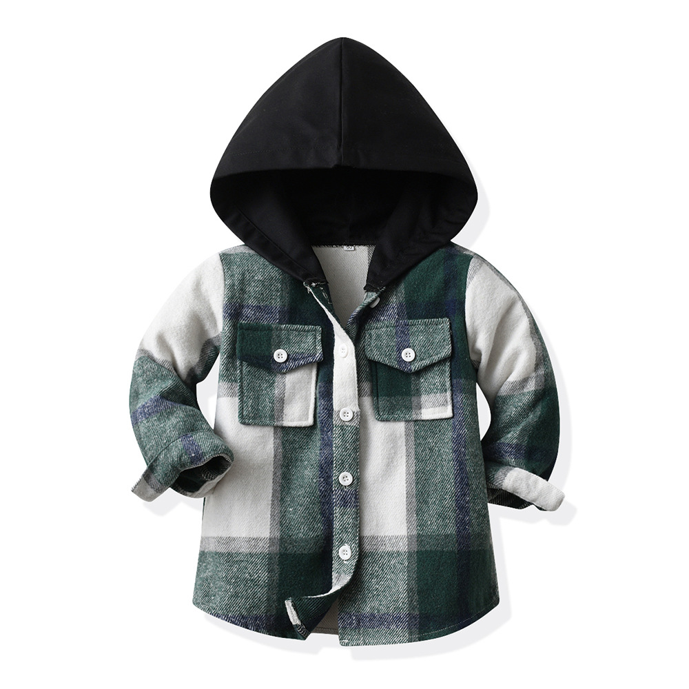 3M-8Y Kids Girls And Boys Plaid Hoooded Jackets  Toddler Boutique Clothing