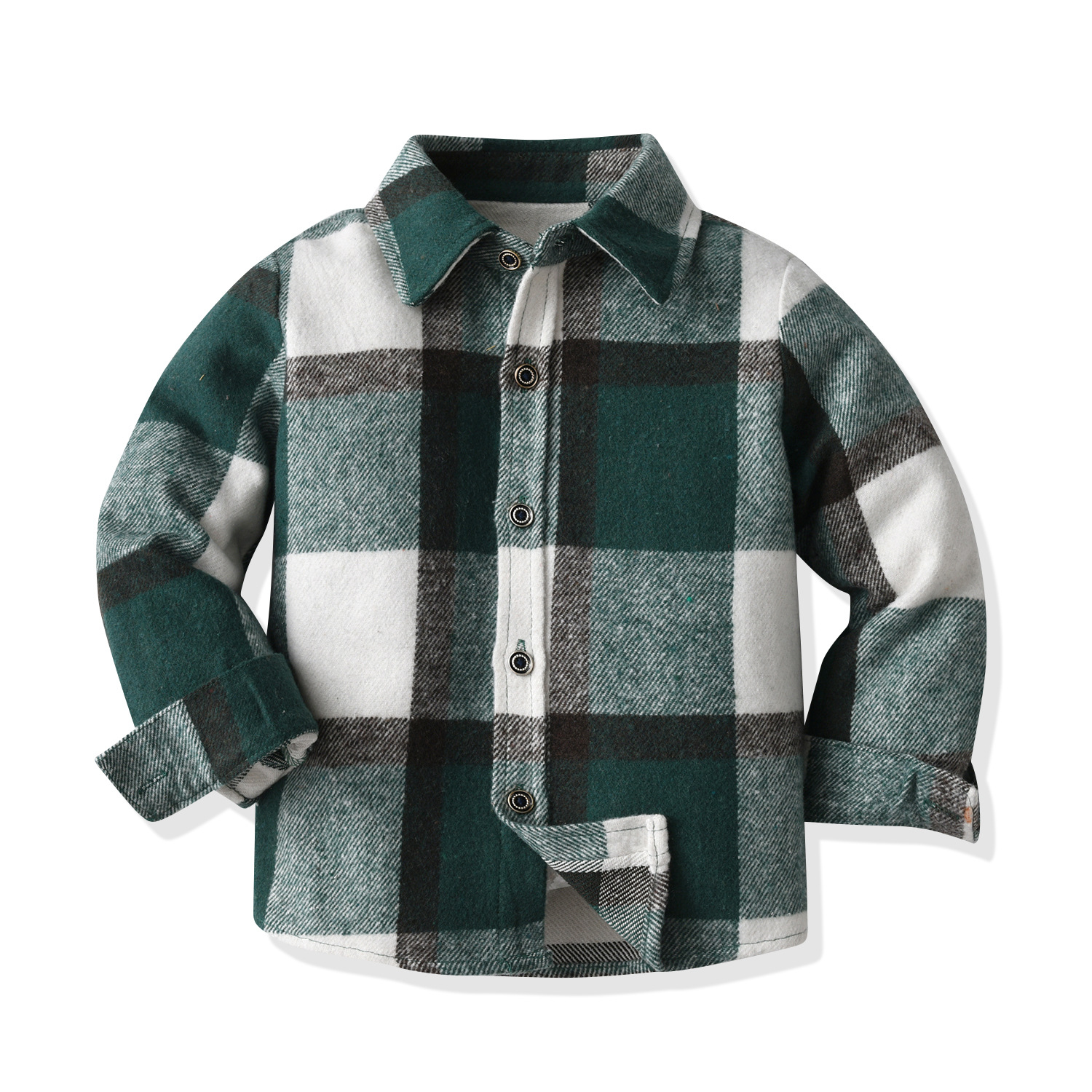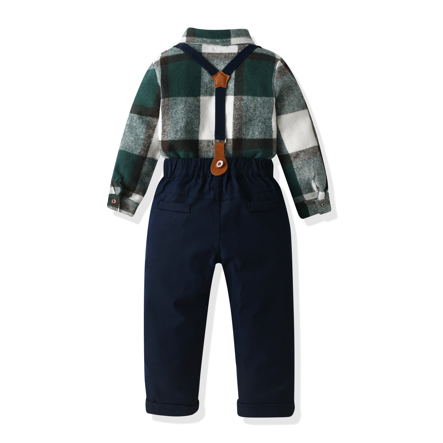 18M-5Y Toddler Boys Suit Sets Long Sleeve Plaid Brushed Shirt & Suspender Pants Boys Clothing