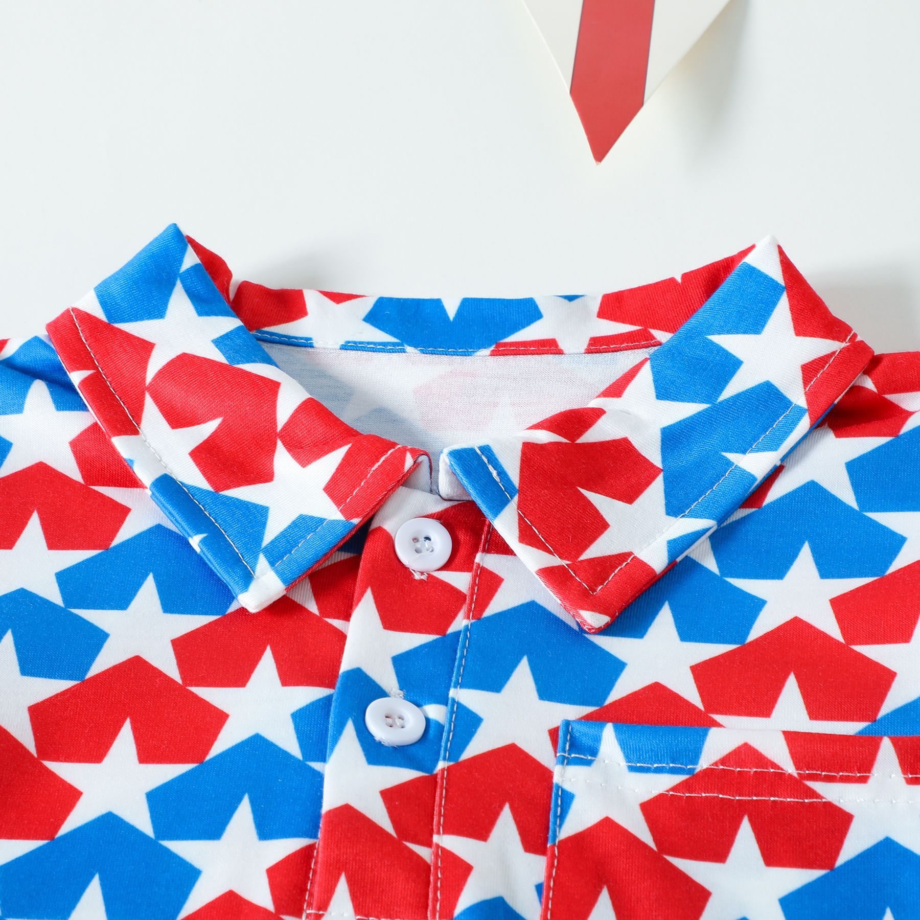 9M-4Y Toddler Boys Independence Day Star Print Lapel Collar Polo Shirt Boys Clothing