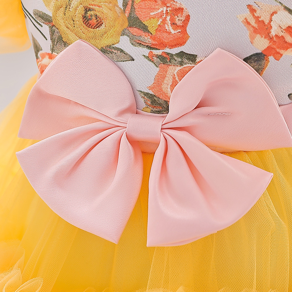 12M-3Y Toddler Girls Bow Stitching Mesh Princess Dresses Girls Clothes