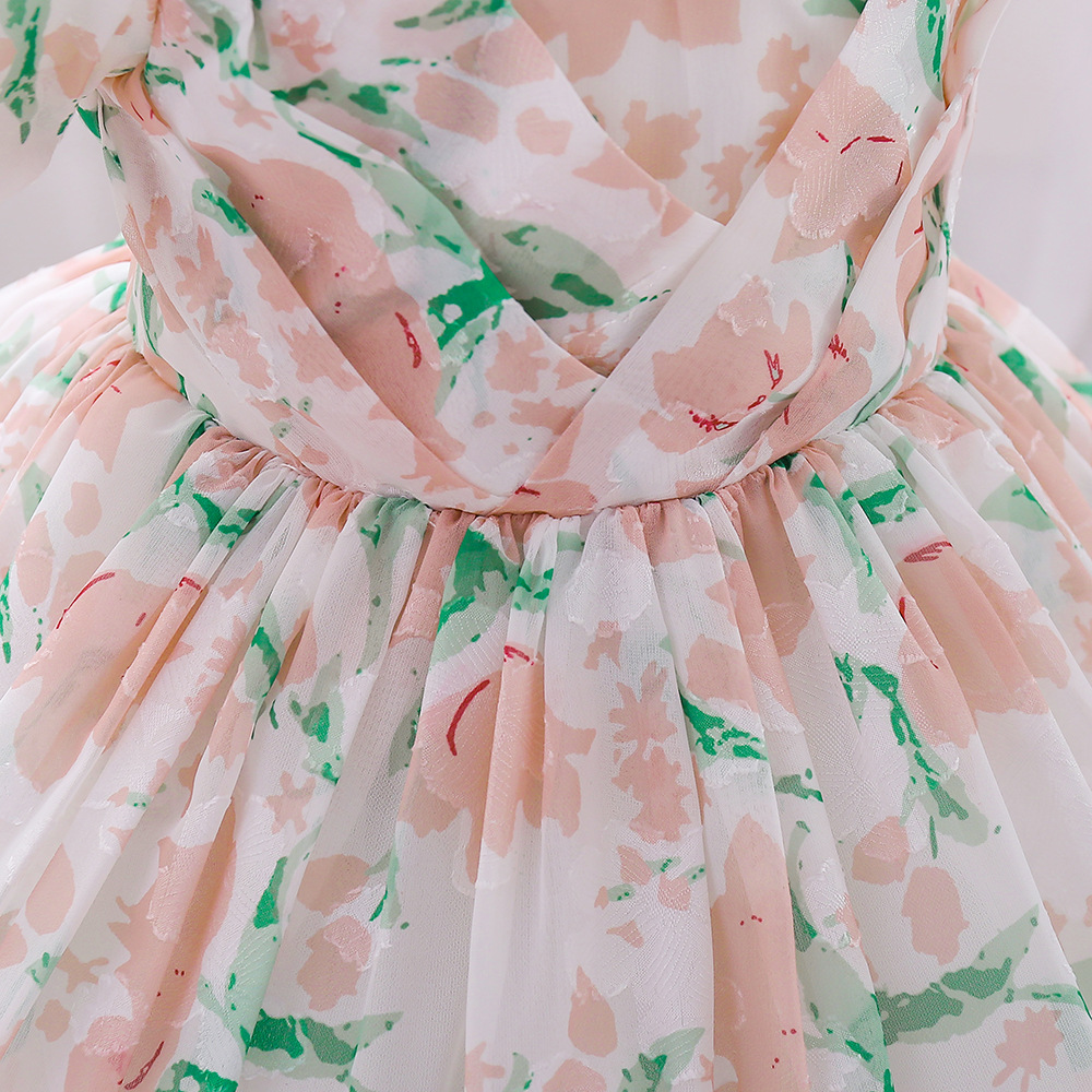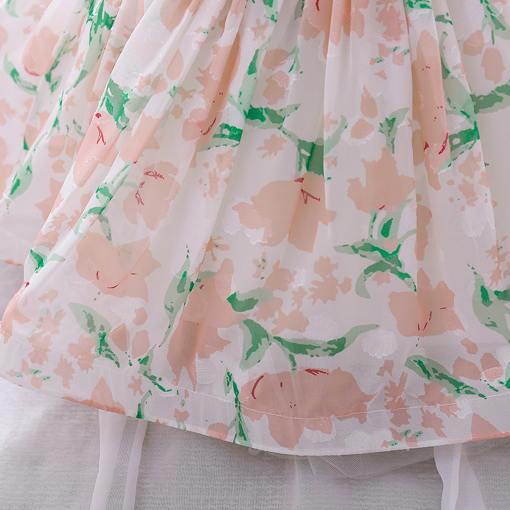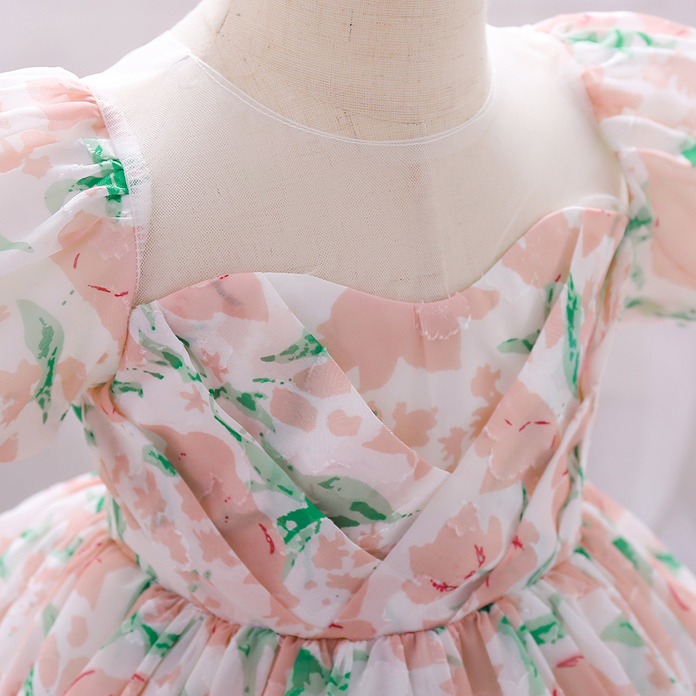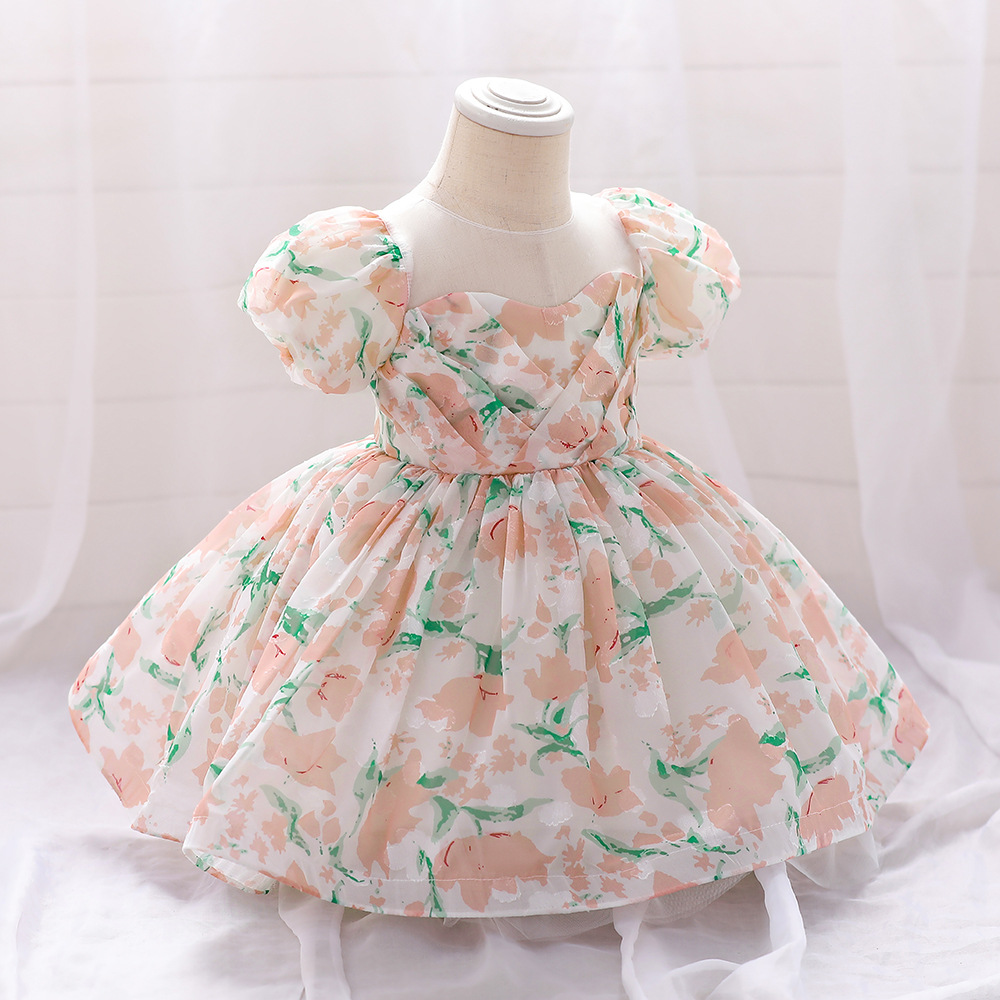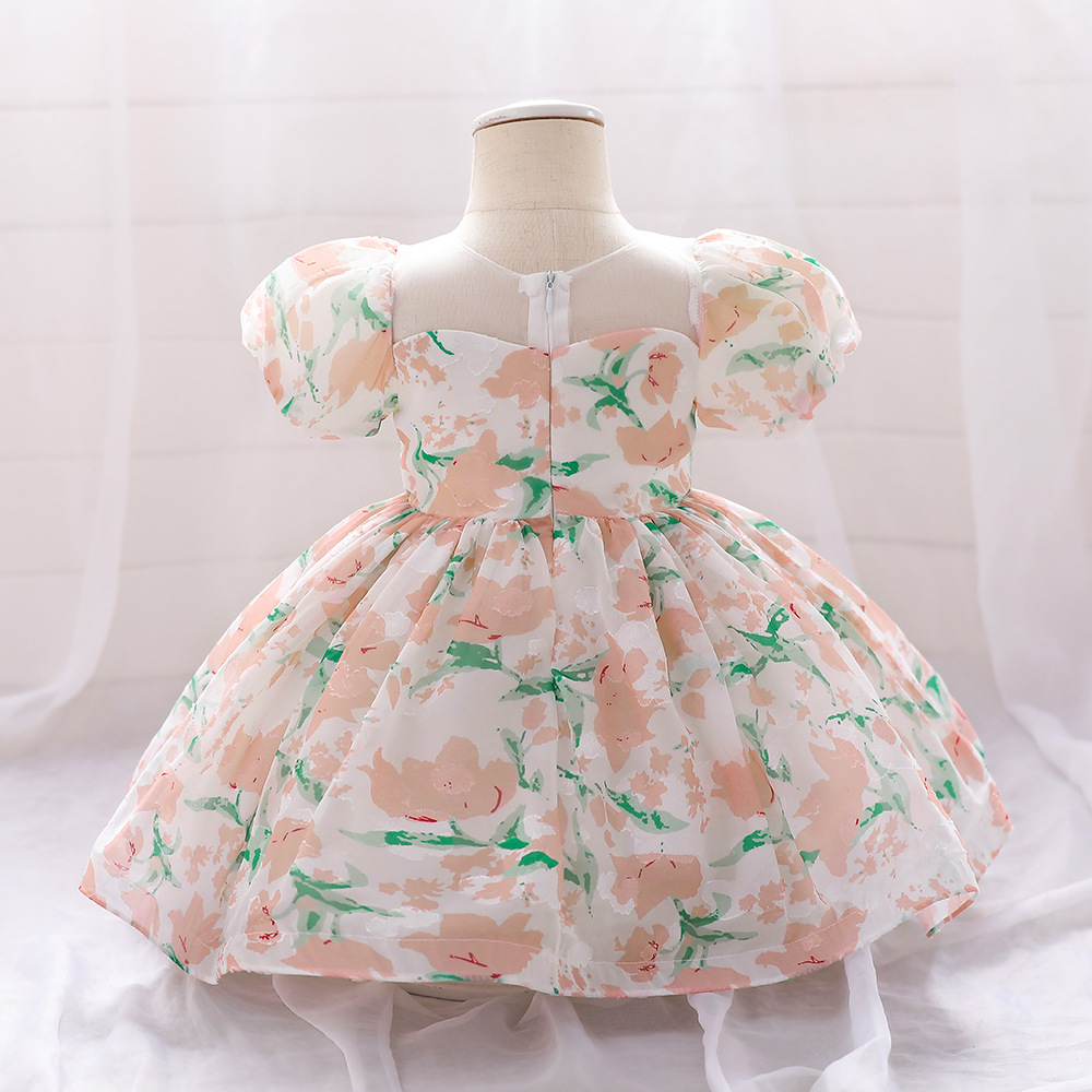 12M-3Y Toddler Girls Floral Puff Sleeve Mesh Princess Dresses Girls Clothes