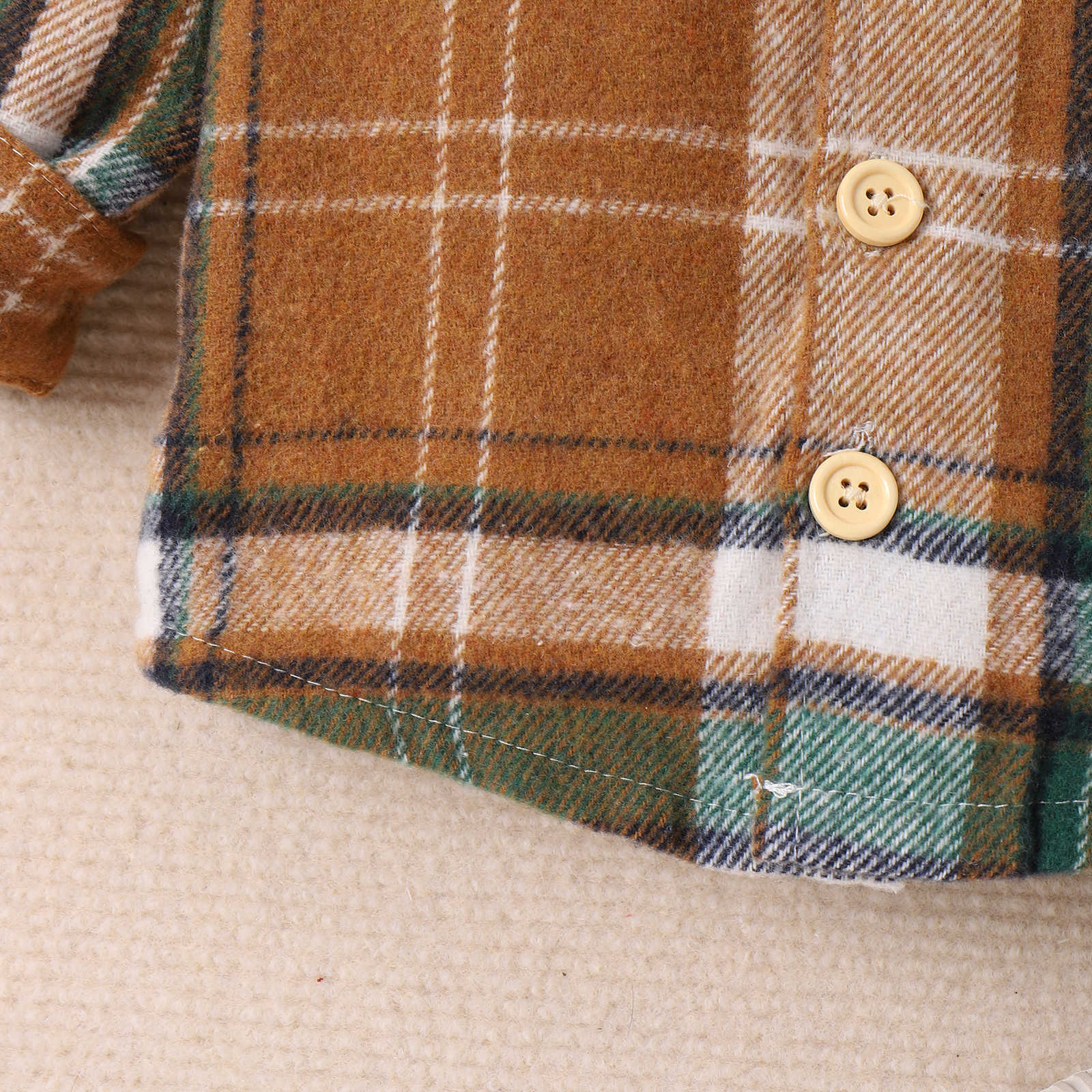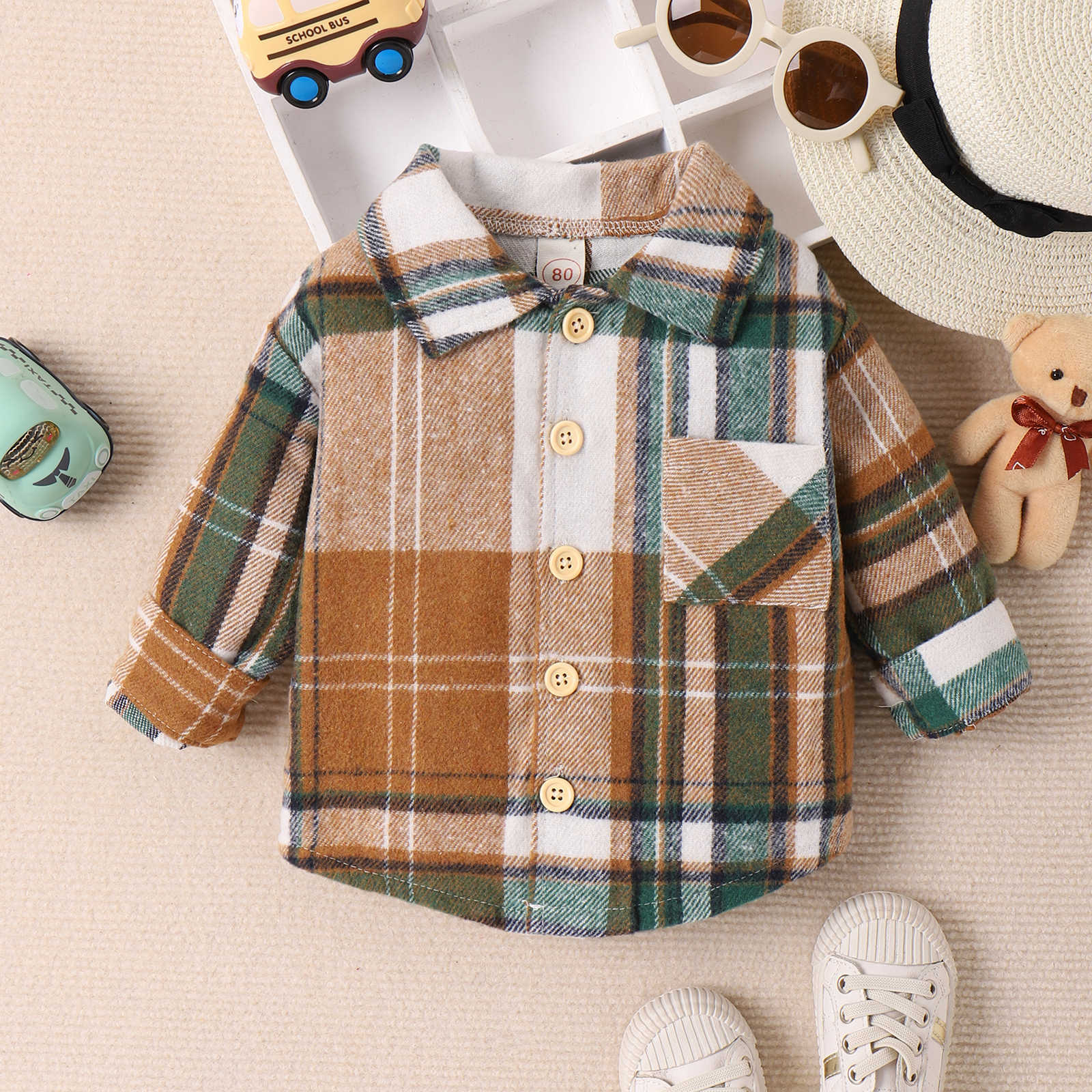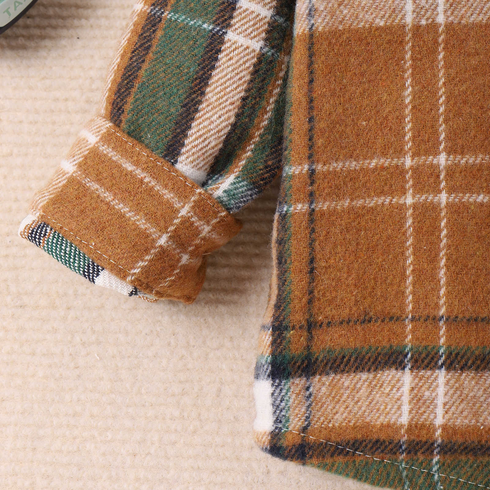 12M-5Y Toddler Boys Lapel Brushed Single Breasted Plaid Shirts Toddler Clothing