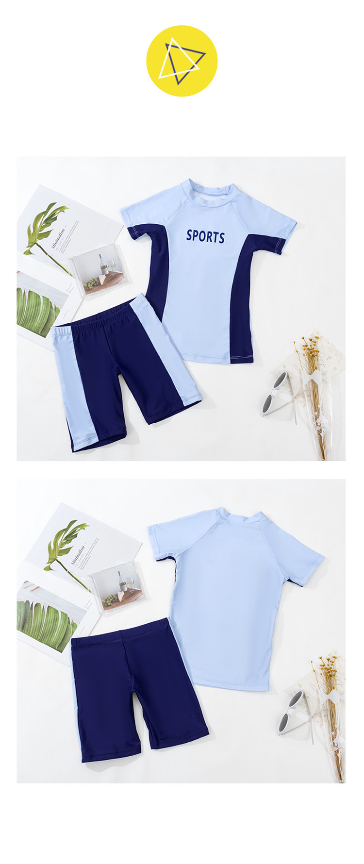 10-15Y Kids Boy Swimwear & Beachwear Colorblock Letter Print Short Sleeve Top And Shorts Kid Clothing Vendors